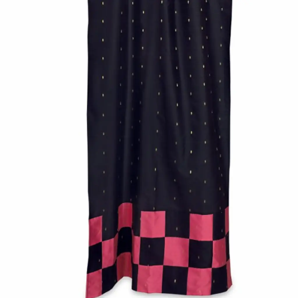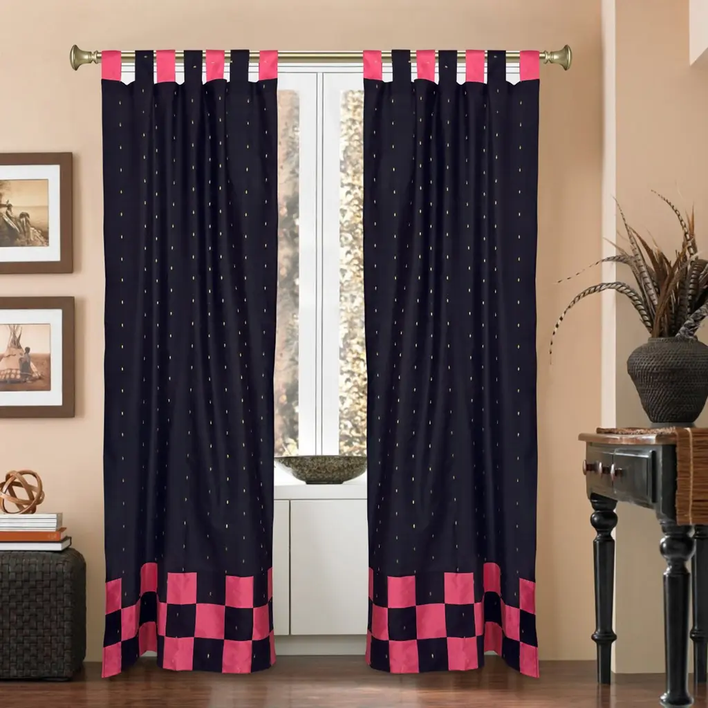 2 Eclectic Black Indian Sari Curtains Tab Top Curtain Drapes