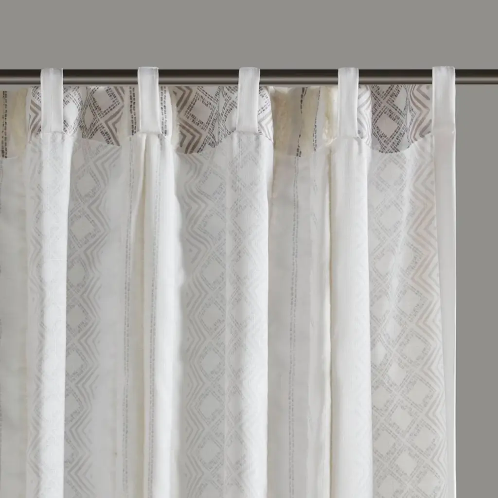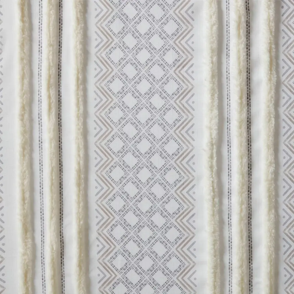 2Pk Poly Printed Curtain Panel With Tufted Stripe White/taupe 2-pk 50x95in