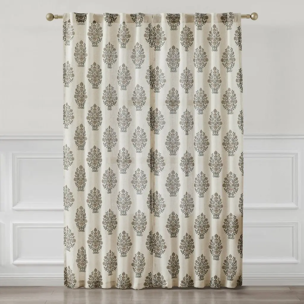 Add timeless charm to your windows with these floral curtains. Designed with a traditional block print in soft pastels, they effortlessly blend boho and vintage styles. Made with a textured linen blend, they provide moderate privacy and allows some light to pass through. Sold as 2 panels, each measuring 37 inches wide by 84 inches long. This set offers seamless installation with its 3" back tab rod pocket, easily slide it onto your curtain rod or by using clip rings (not included). Machine washable.