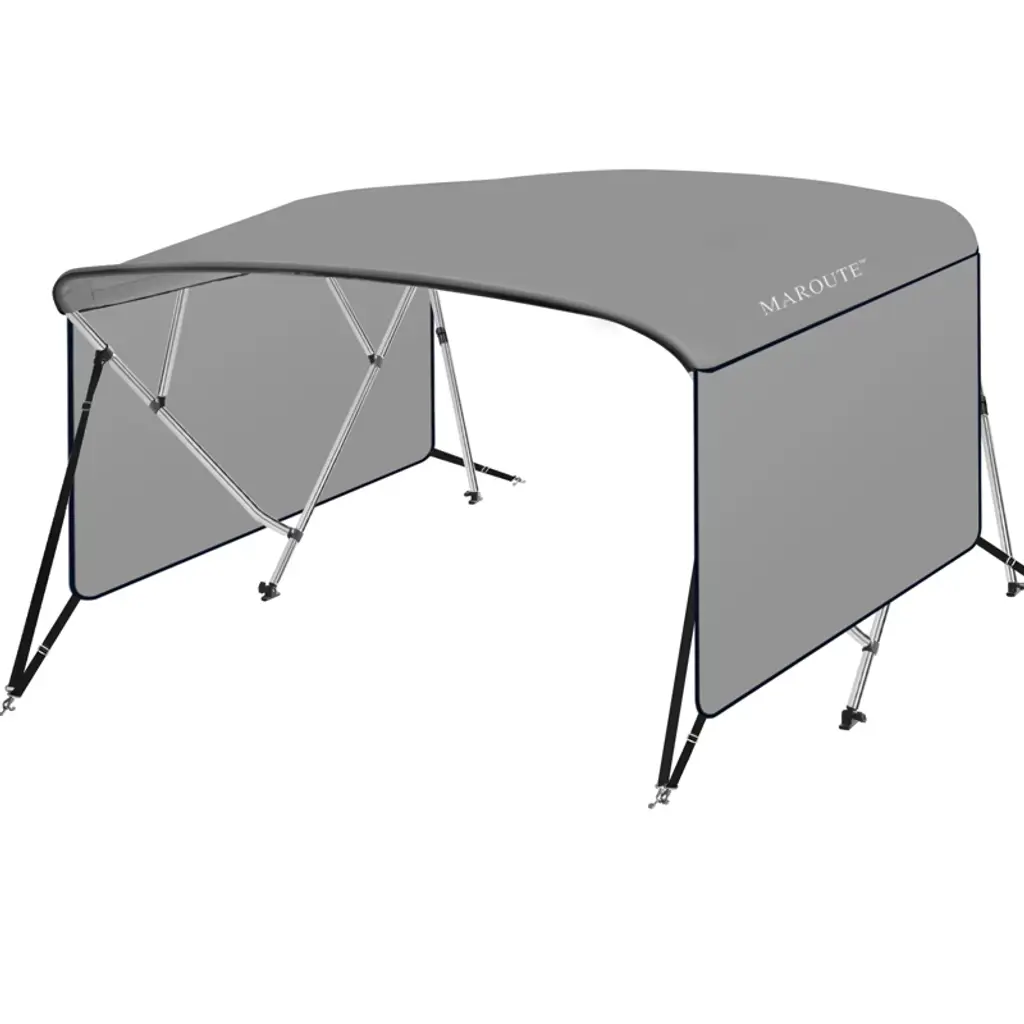 Introducing our 4 Bow Bimini Tops for Boat, the perfect solution for protecting your boat while enhancing your boating experience. Crafted from marine grade canvas and PU-coated fabric, this boat canopy offers superior durability and waterproof protection, ensuring your boat stays dry and shielded from the elements.This bimini top boat cover features a sturdy aluminum frame with support poles that provide reliable stability and strength. The included 2 straps and 2 rear support poles make installation secure and hassle-free, giving you peace of mind during your time on the water.Designed with convenience in mind, the zippered side curtains offer easy access and added protection against wind and rain, making your boat storage and boating trips more comfortable. The bimini top hardware is built to withstand harsh marine environments, ensuring long-lasting performance.Whether you need a bimini top boat cover for sun protection or a waterproof boot cover for rainy days, this versatile product meets all your needs. Its sun sleeve feature helps block harmful UV rays, keeping you and your passengers cool and comfortable.Upgrade your boat with this premium bimini top that combines functionality, durability, and style. Ideal for boat owners looking for a reliable, easy-to-install boat cover and storage solution. Protect your investment and enjoy your time on the water with confidence.Key Features:- Marine grade canvas and PU-coated fabric for waterproof protection- 4 bow aluminum frame with support poles for enhanced stability- Zippered side curtains for added protection and easy access- Includes 2 straps and 2 rear support poles for secure installation- Durable bimini top hardware designed for marine environments- Sun sleeve feature for UV protection- Suitable for boat storage and everyday boating useExperience the ultimate in boat protection and comfort with our 4 Bow Bimini Tops for Boat. Order now and enjoy worry-free boating all year round!