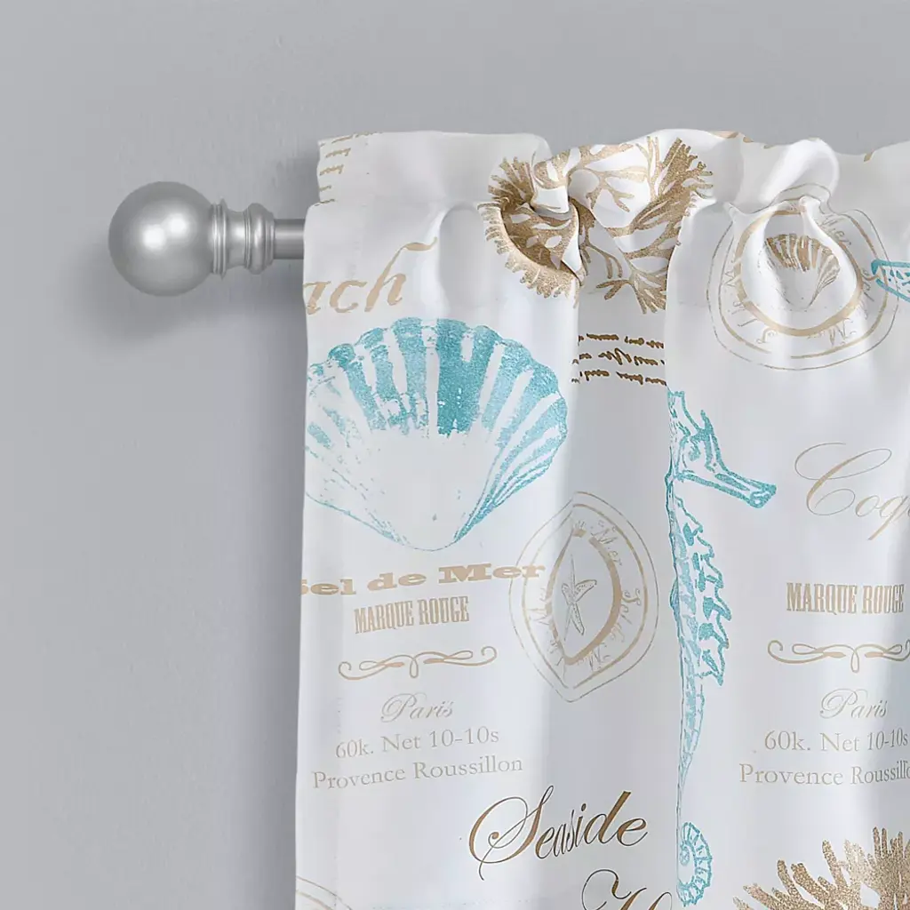 52"x18" Harbor Life Window Valance Blue - Lush Décor: Seahorse Pattern, Polyester, Rod Pocket, Machine Washable