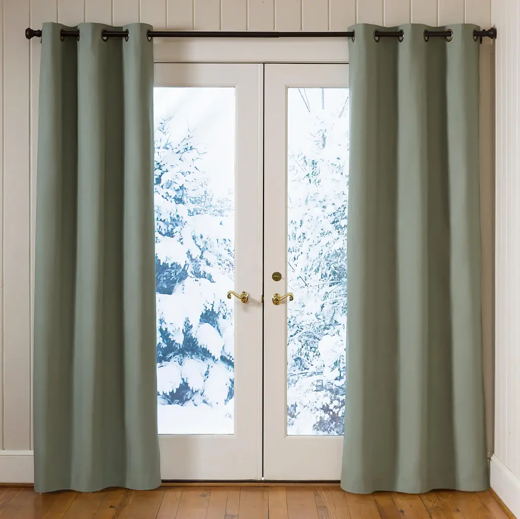 Our Thermalogic™ Energy Efficient Insulated Solid Grommet-Top Curtain Pairs have an attractive finish, substantial weight and a soft feel. They're made of cotton with a rich, woven texture similar to sailcloth and backed with an acrylic suede liner. Six antique-brass grommets per panel.Our insulated Thermalogic™ Curtains create a barrier against sunlight and drafts, helping you maintain a constant room temperature year-round. They are also great for protecting carpets, eliminating unwanted noise and reflections.Thermalogic™ Curtains block out up to 95.3% of light, reduces outdoor sound by up to 46.3% and reduce heat loss as much as 44%. A great investment for any room of your home! Imported.