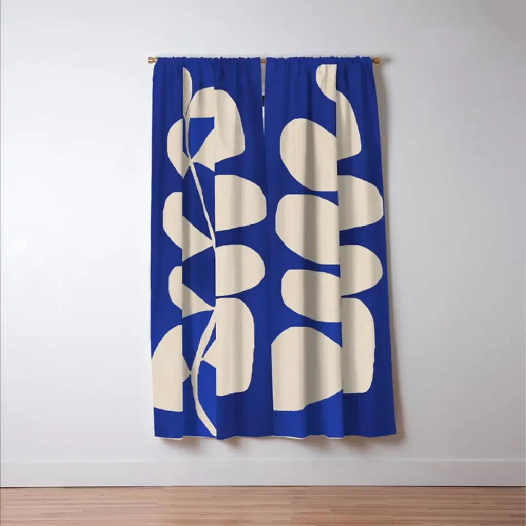 Blackout curtains are crafted with 100% woven polyester with a linen-like texture.Light-Filtering curtains are crafted with 100% mid-weight polyester.Sheer curtains are crafted with 100% lightweight polyester.Single sided print with white on reverse.Available in single or double panel options (double panels feature the same design on both).4" bottom pocket for easy hanging on any curtain rod (please note: artwork will appear upside down on non-patterned designs).Machine washable for easy care.Please note: Color variations may occur between on-site previews, your screen, and the printed fabric.Blackout, Light-Filtering, and Sheer Curtains are easy to care for:Machine wash cold.Use gentle cycle.Tumble dry low.SHIPPING: Items are made to order and typically ship within 3-4 business days. Click here for more information about delivery options.RETURNS: Return requests can be made within 30 days of your item(s) delivery. Click here for more information on returns.
