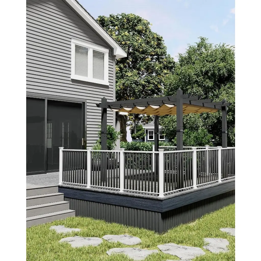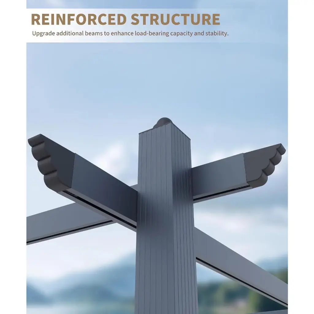 Acekool’s Aluminum Pergola transforms any outdoor area into a stylish, reliable haven. Crafted with a realistic wood-grain or elegant gray finish, the powder-coated aluminum frame delivers classic aesthetics with the strength to resist rust, fading, and weathering. No rotting, no splinters—just long-lasting beauty and stability you can trust. Engineered for year-round enjoyment, the structure features 1mm reinforced walls for industrial-level strength. The innovative four-sided anchoring system keeps the pergola anchored and secure, even in windy or variable conditions. Retractable fabric covers (available in multiple colors) let you easily adjust sun and shade. Its versatile, adaptable design suits barbecues, casual family dinners, outdoor parties, or quiet relaxation, blending seamlessly with any garden or patio style. All parts are pre-labeled, and detailed assembly instructions ensure your pergola is set up quickly, so you spend less time building and more time unwinding. Choose from multiple color combinations and sizes—10x10 ft or 10x13 ft—to perfectly fit your needs and personalize your backyard oasis. With both wood grain and classic gray pillar options, plus a range of curtain colors, you can create a look that’s truly your own.
