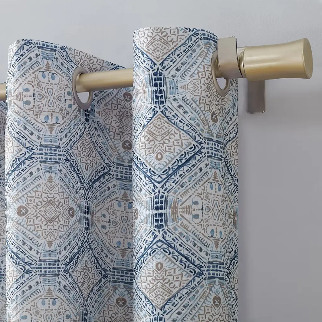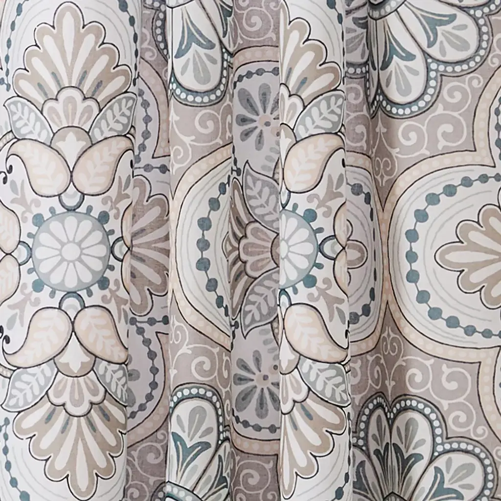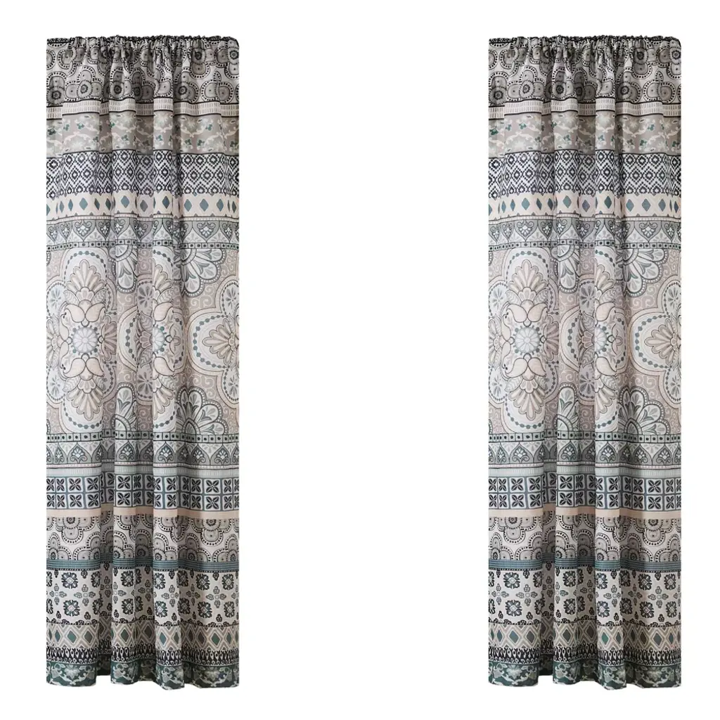 The Addie drape panel set of 2 complements the Levtex Home Addie collection. This is the perfect accessory for any bathroom. Sized at 55x84in., this comes as a pair and features a intricate colorful medallion stripe pattern. Made from 100% cotton, the Addie decorative curtains are easy to care for. These come with with a rod pocket ready for installation.