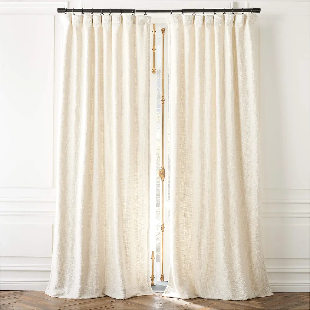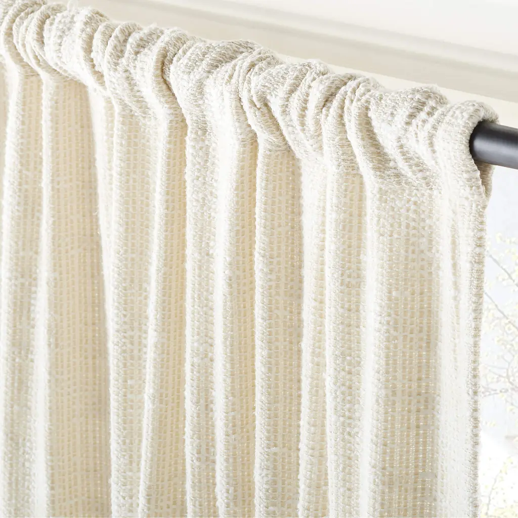 Woven with rich texture, cotton-blend curtain panel offers a soft hand in tonal white and ivory. CB2 exclusive.