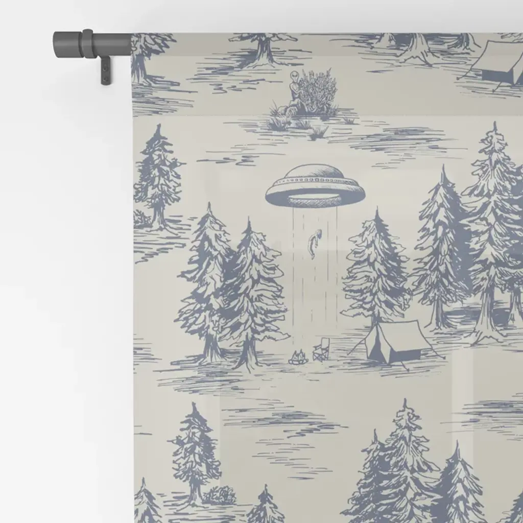 Alien Abduction Toile De Jouy Pattern In Blue Curtain