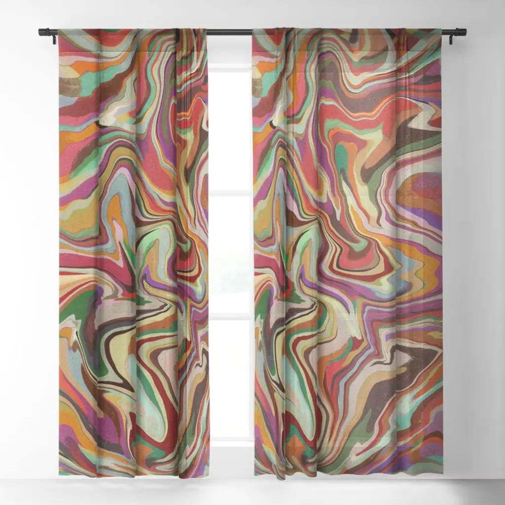 Alisa Galitsyna Colorful Liquid Swirl 50" X 108" Set Of 2 Panel Sheer Window Curtain - Deny Designs