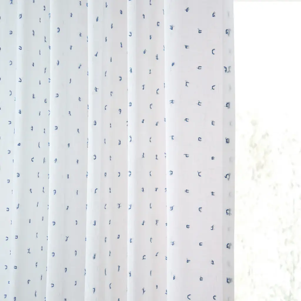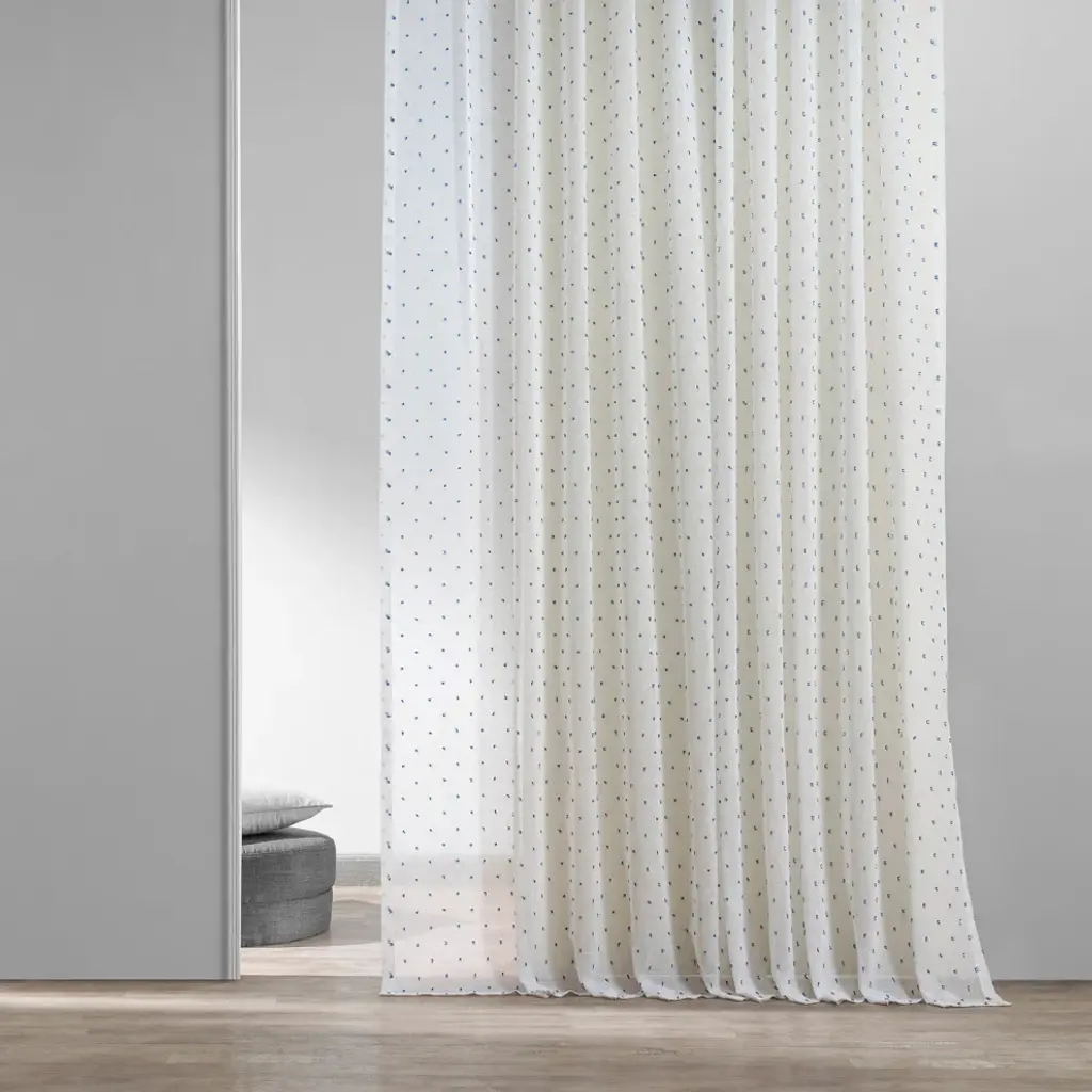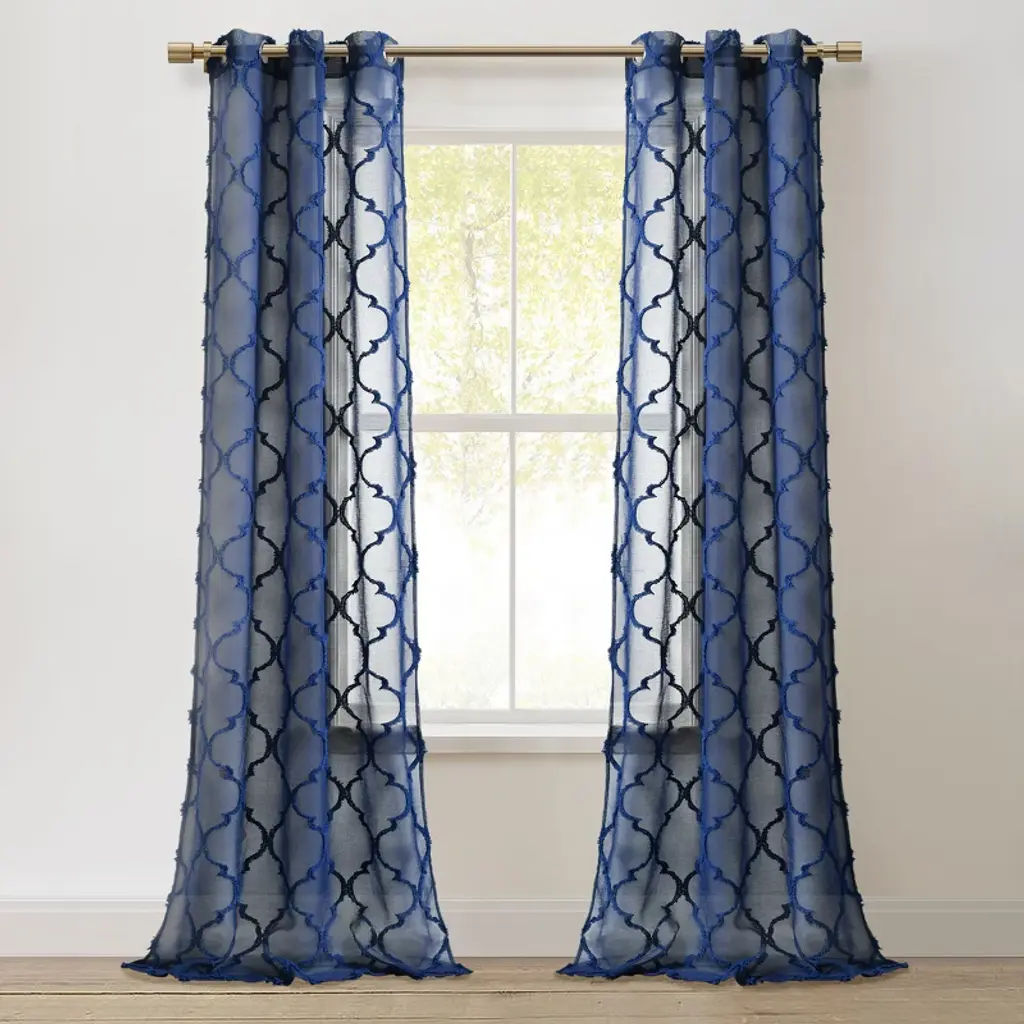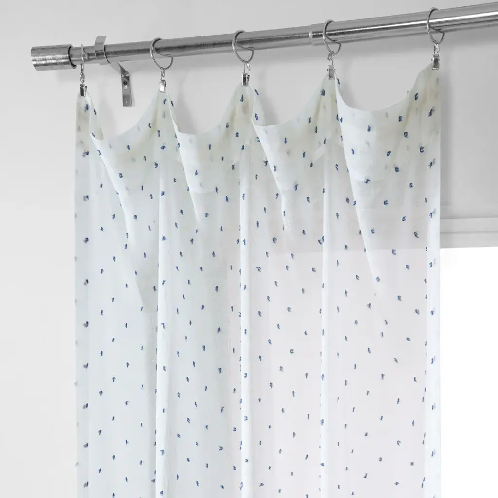 Altair Blue Patterned Linen Sheer Curtain Single Panel, 50"x108"