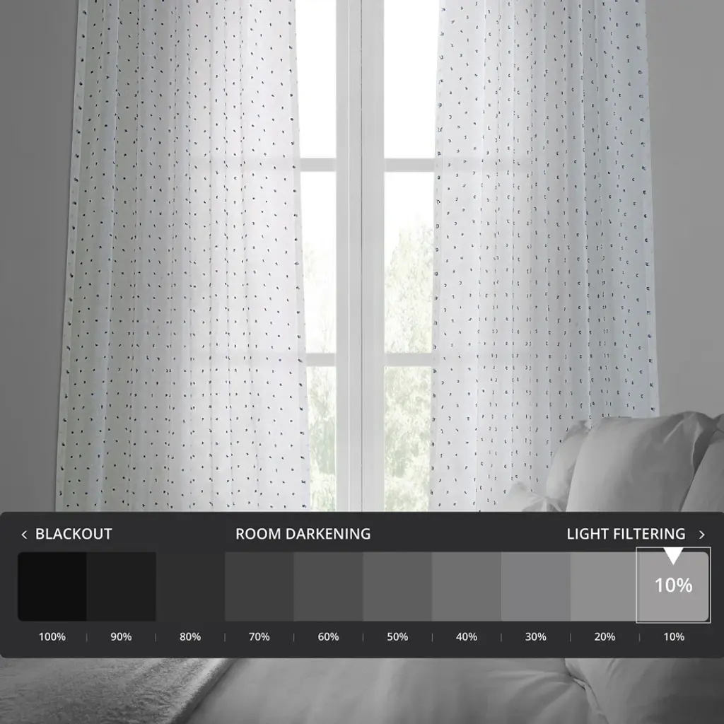 Soft, supple and translucent, these beautiful Patterned Linen Sheers will add interest and elegance to any window. Offered in medley of designs from modern geometrics to romantic florals, these sheer curtains can be an added decorative touch when paired with solid curtains, or can be a charming, elegant design element when hung all on their own.