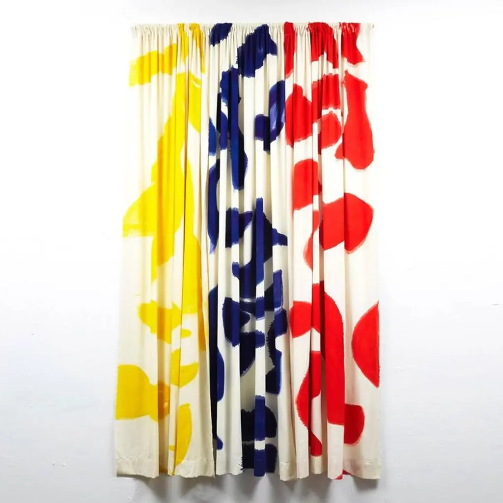 Pick a color, any color and Naomi Clark will use that color in an Amoeba silk noil painting! Light and slightly transparent, painted silk noil looks beautiful hanging in a window frame as a curtain, or on a wall as a scroll-like tapestry. The curtain panels pictured are 97.2" x 55"Hand painted amoeba silk noil is $160 per yard.Dry clean onlyLead Time: Made to Order, 6-7 weeksCustomized orders are non-refundable