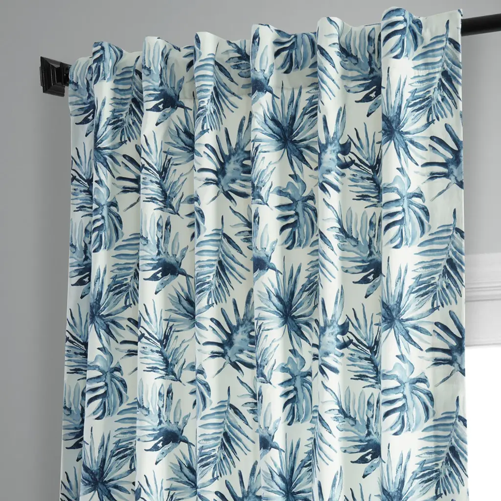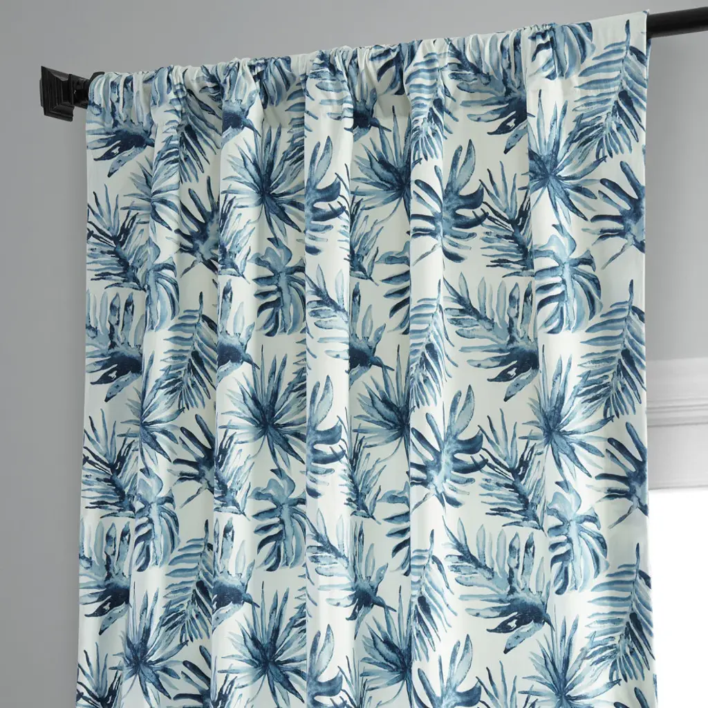 Artemis Printed Cotton Curtain Single Panel, Artemis Blue, 50wx108l
