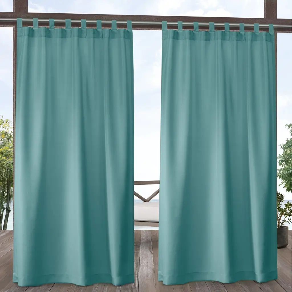Elevate your indoor or outdoor space with these versatile Solid Cabana Tab Top Curtain Panel Pair from ATI Home. The heavy-duty polyester fabric construction guarantees durability and protection against mildew, water, and UV rays. Filtering out some natural light, the Level 2 opacity creates the perfect balance of sunlight and shade. The tab top headers with hook and loop fasteners make installation effortless.Features:Additional Details: