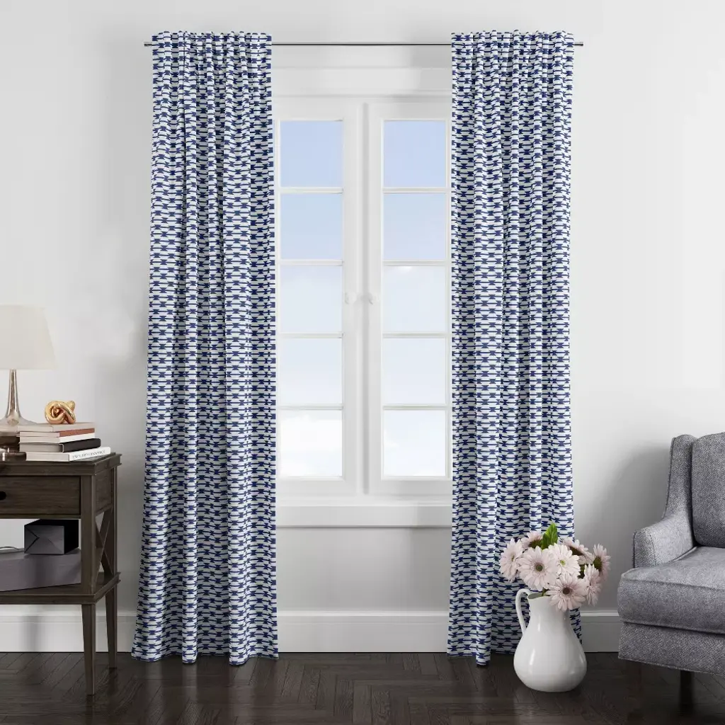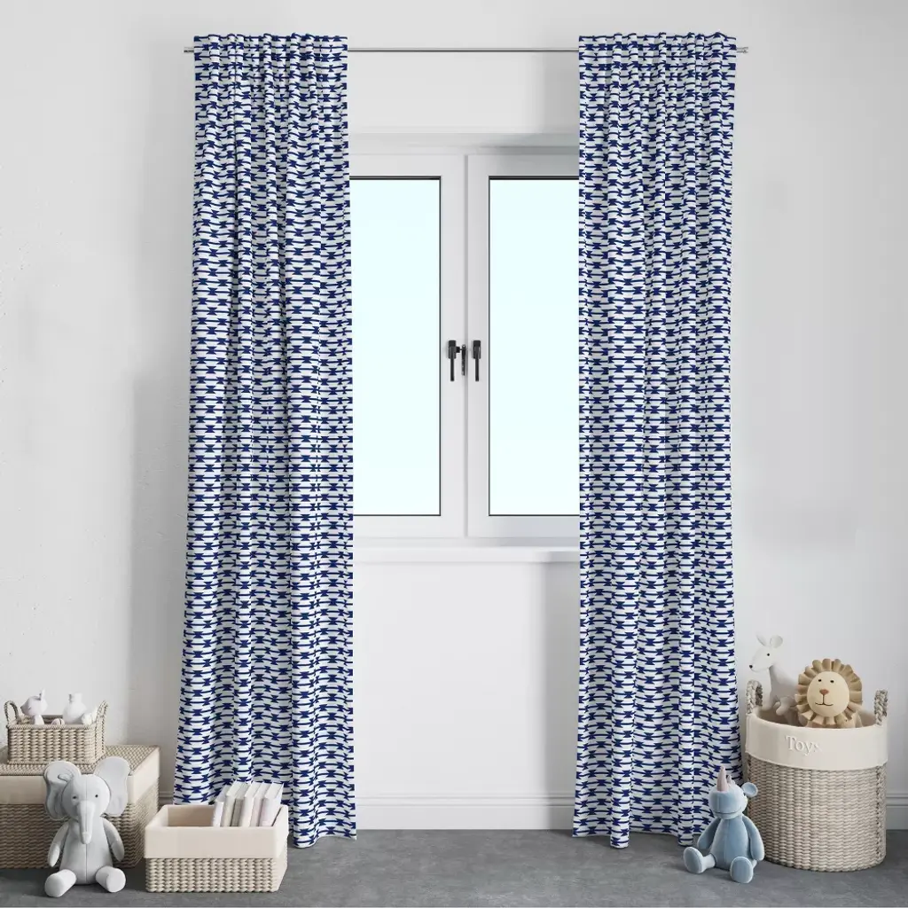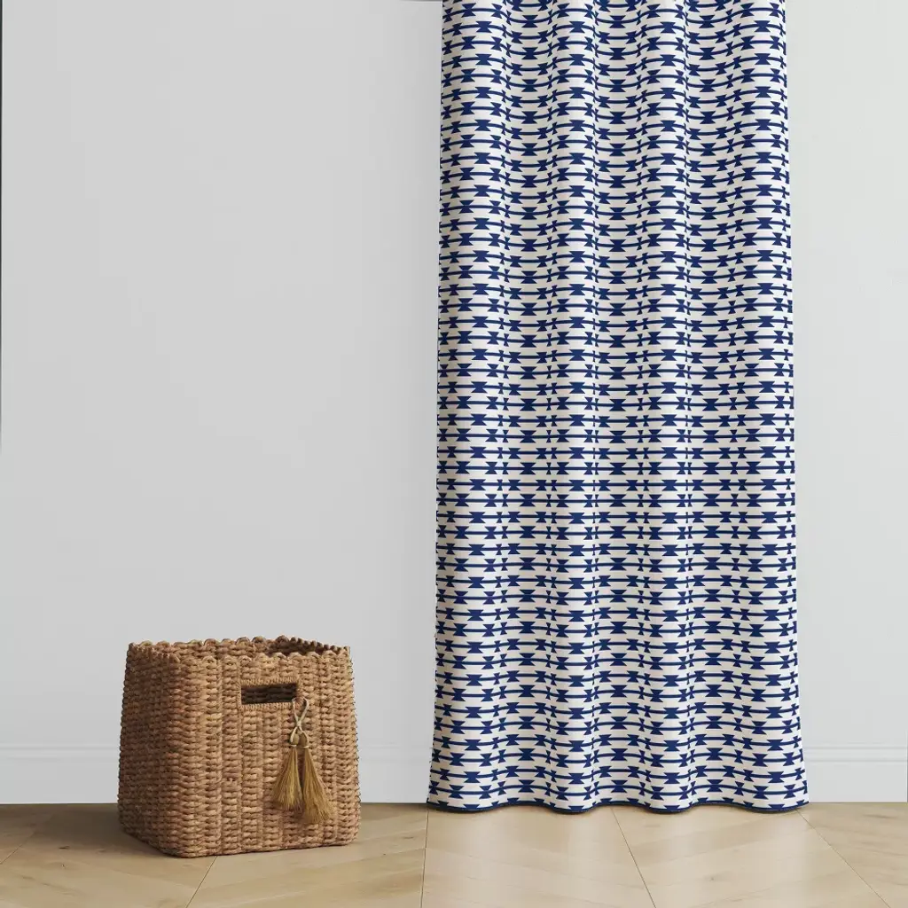 Bacati - Aztec Kilim Navy Cotton Printed Single Window Curtain Panel