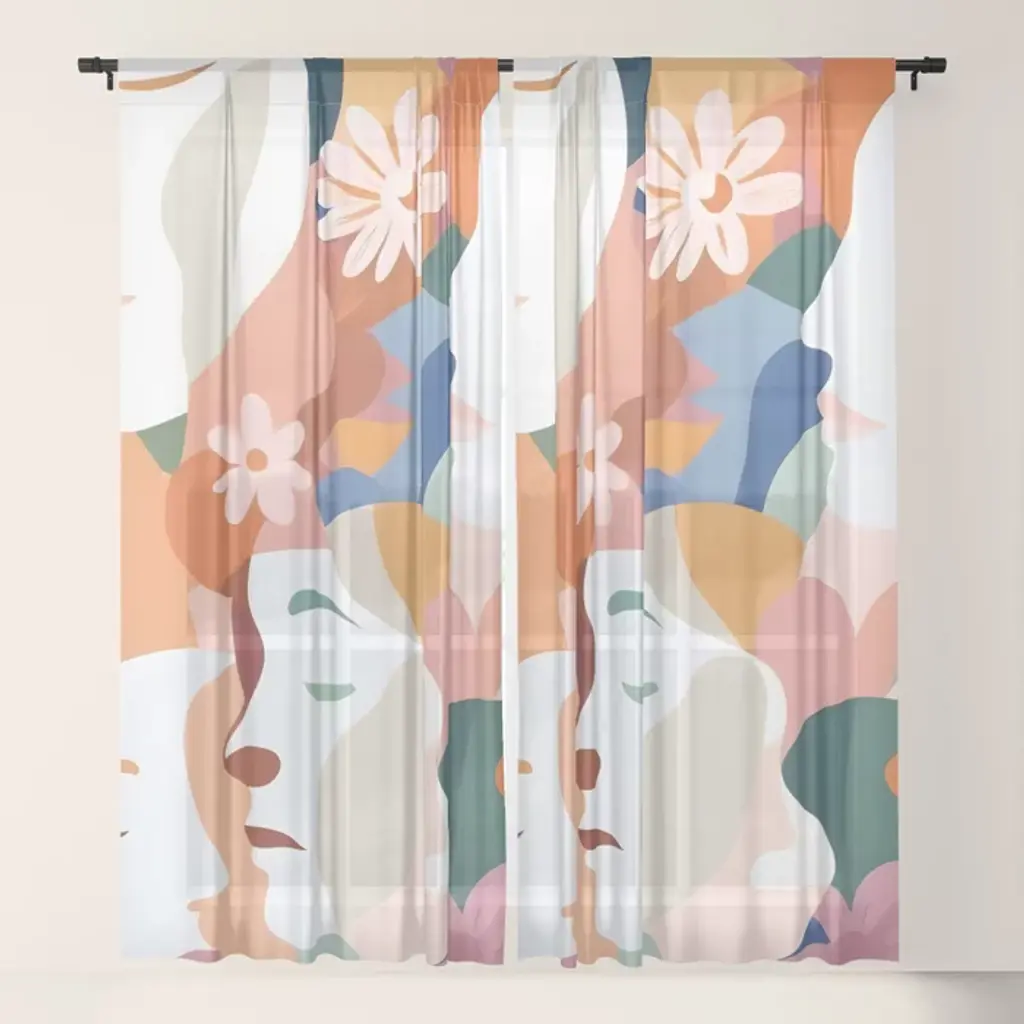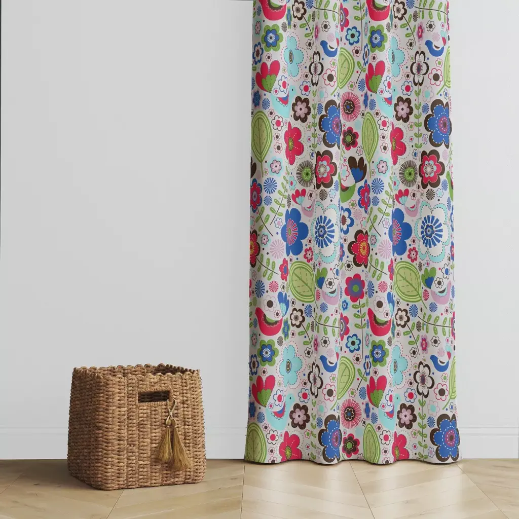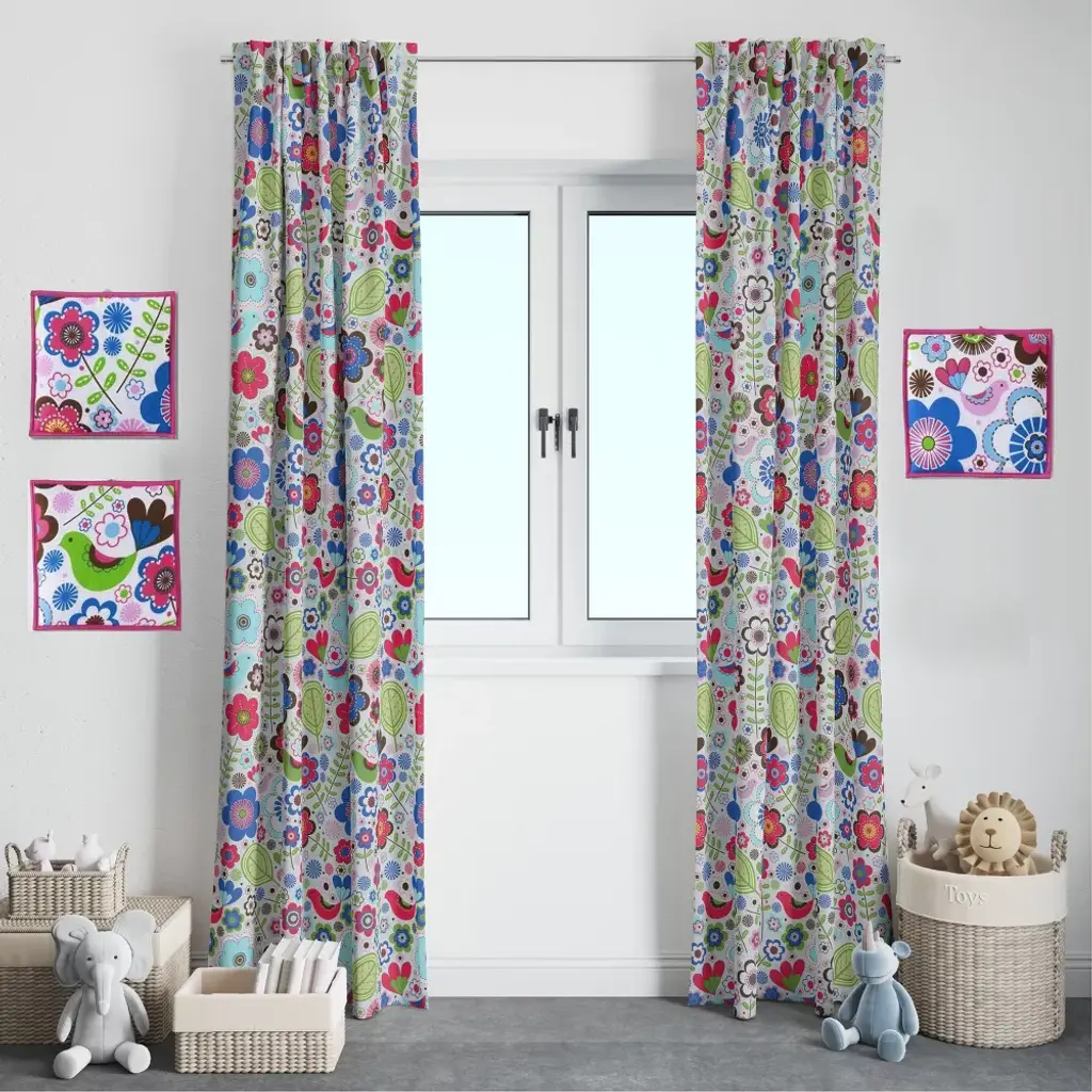 Bacati - Botanical Floral With Birds Pink/multicolor Curtain Panel