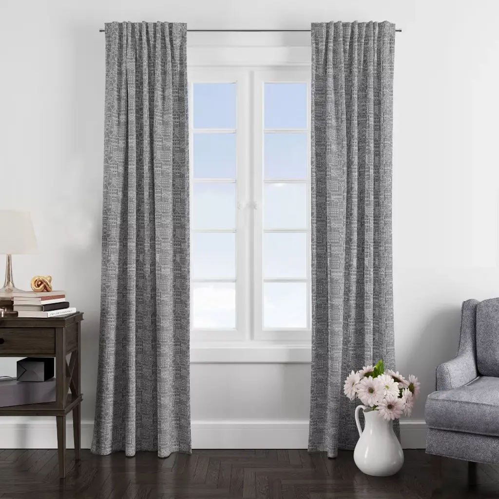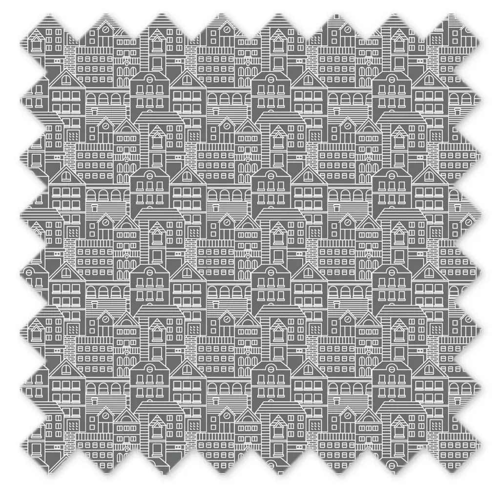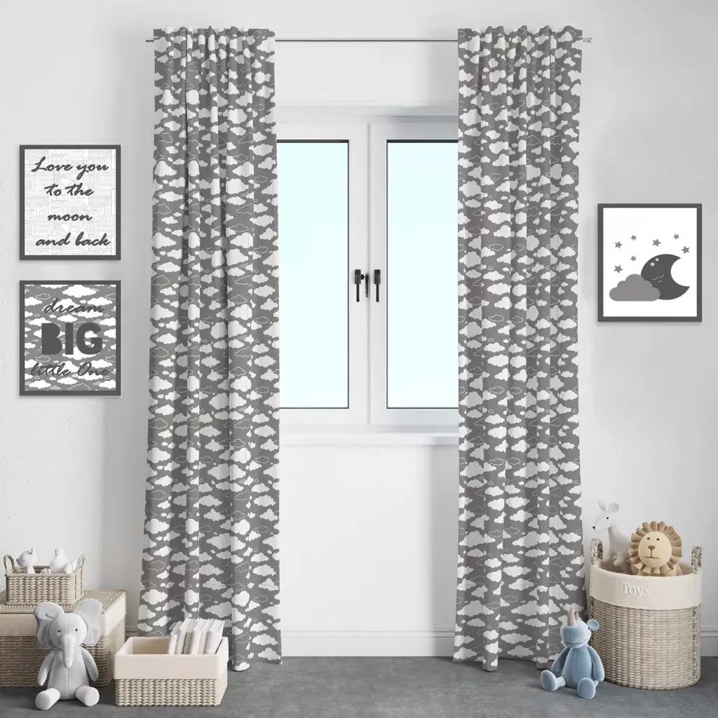 Bacati - Clouds In The City Grey Cityscape Cotton Printed Single Window Curtain Panel