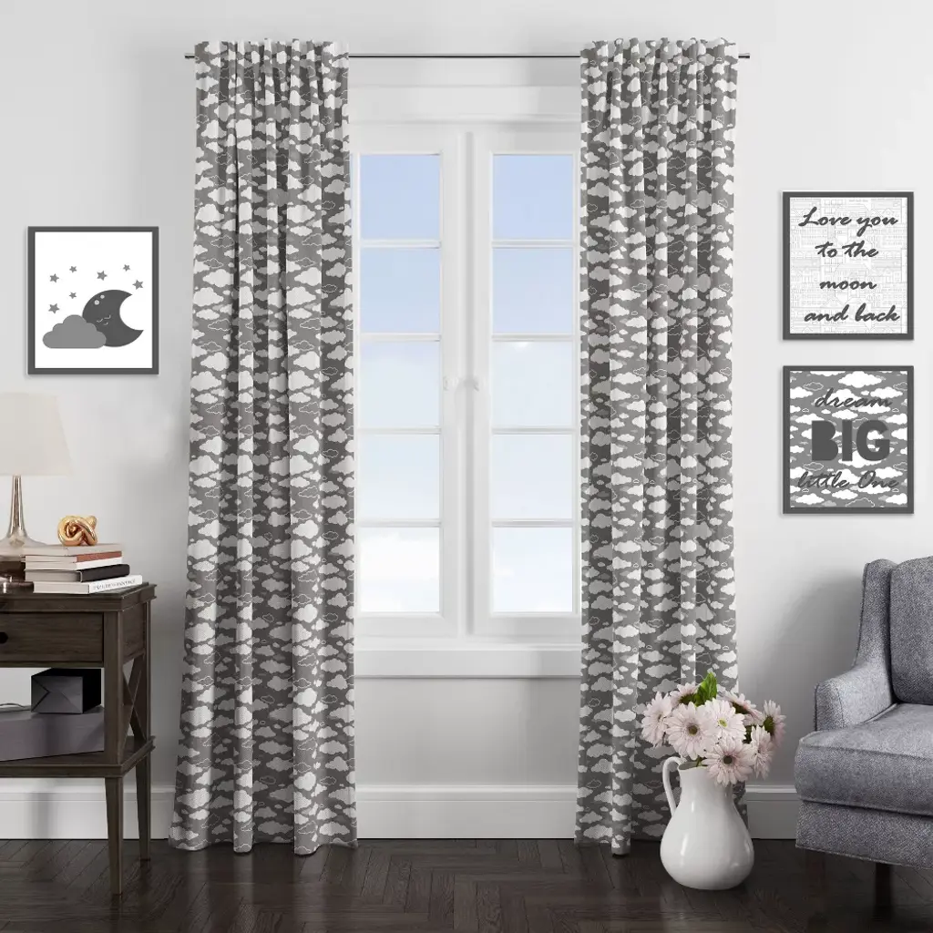 Bacati - Clouds In The City Grey Clouds Cotton Printed Single Window Curtain Panel