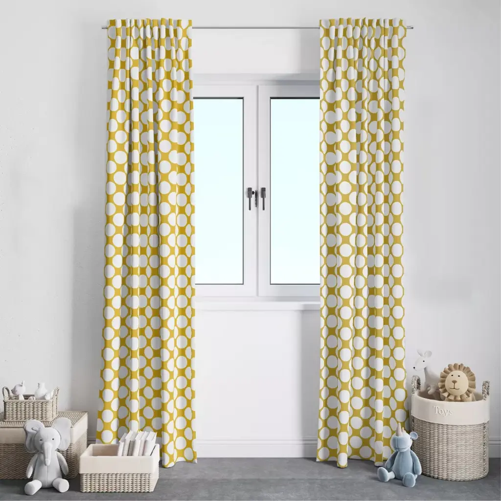 Bacati - Large Dots Yellow Cotton Printed Single Window Curtain Panel