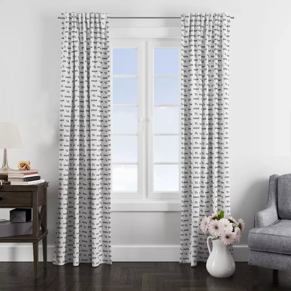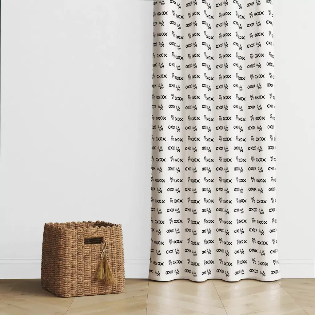 Bacati - Love Black Kisses N Hugs Cotton Printed Single Window Curtain Panel