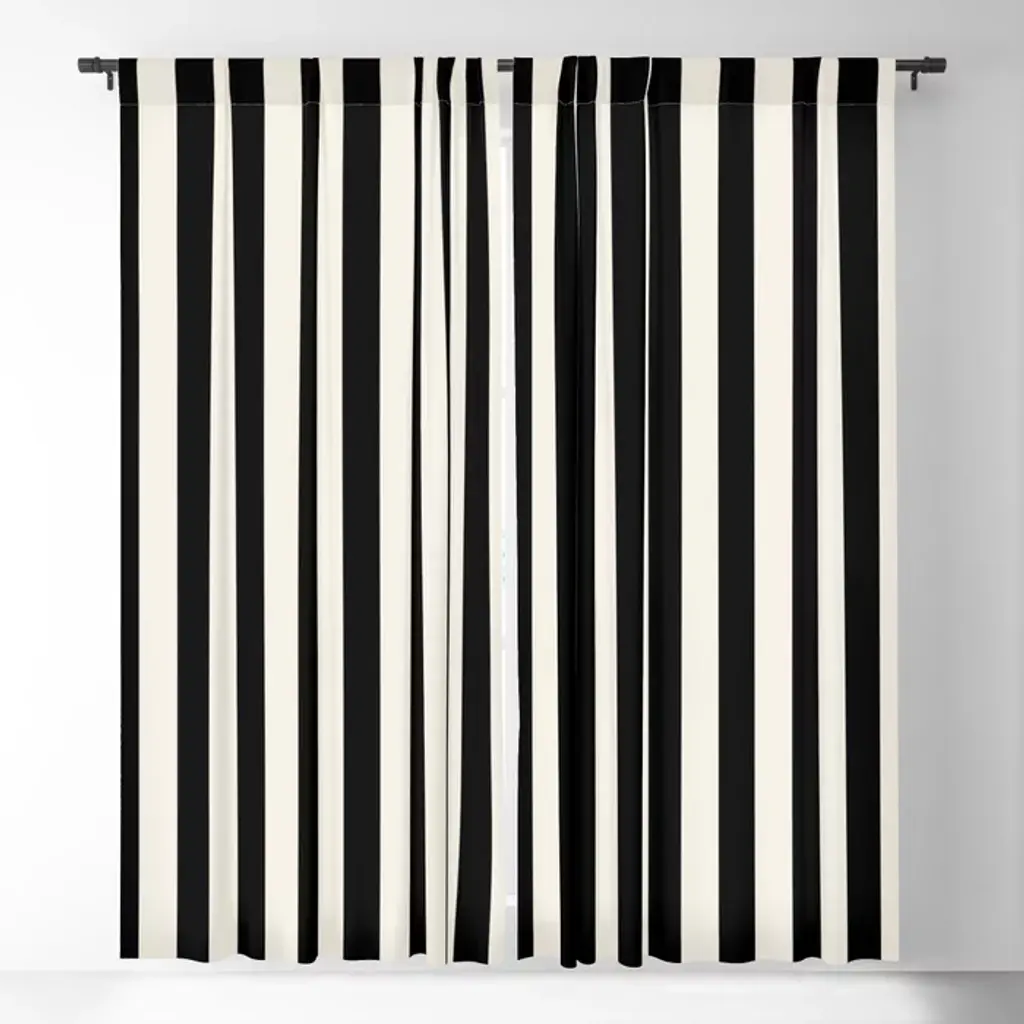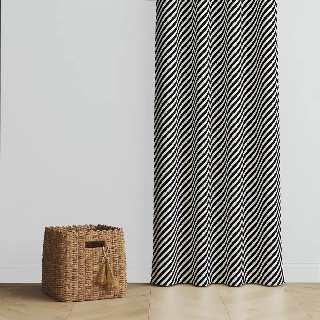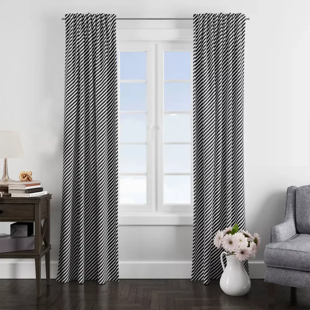 Bacati - Love Black Warp Stripes Cotton Printed Single Window Curtain Panel