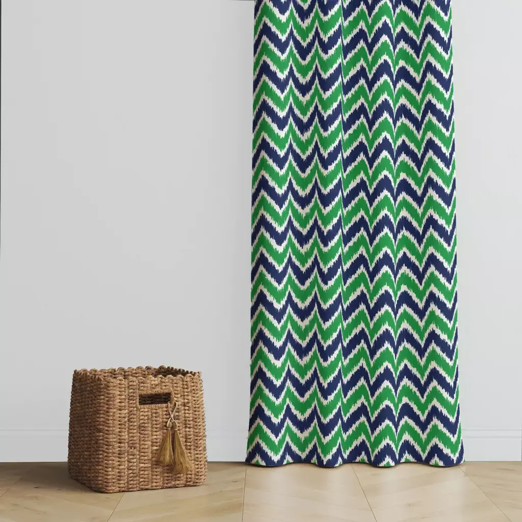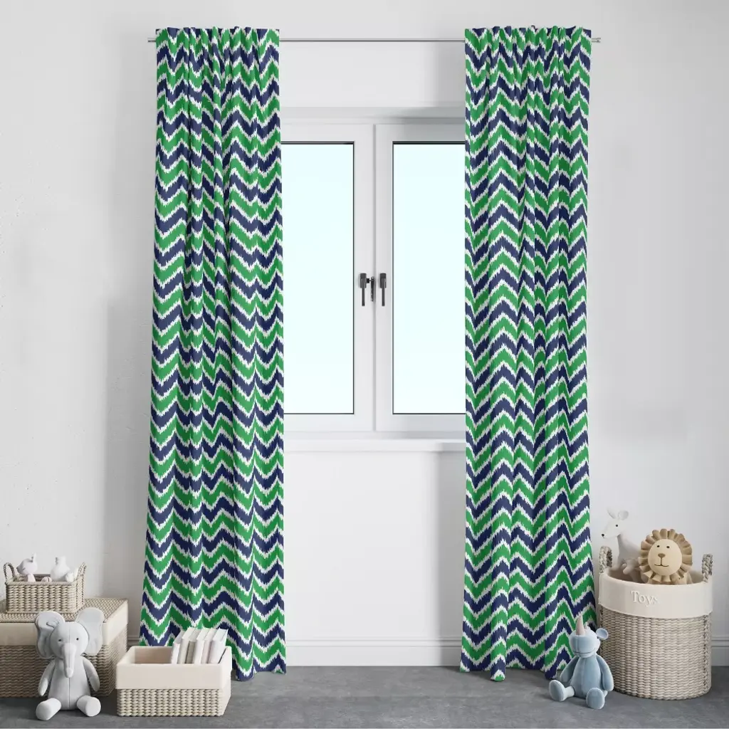 Bacati - Mix N Match Navy/green Chevron Ikat Curtain Panel