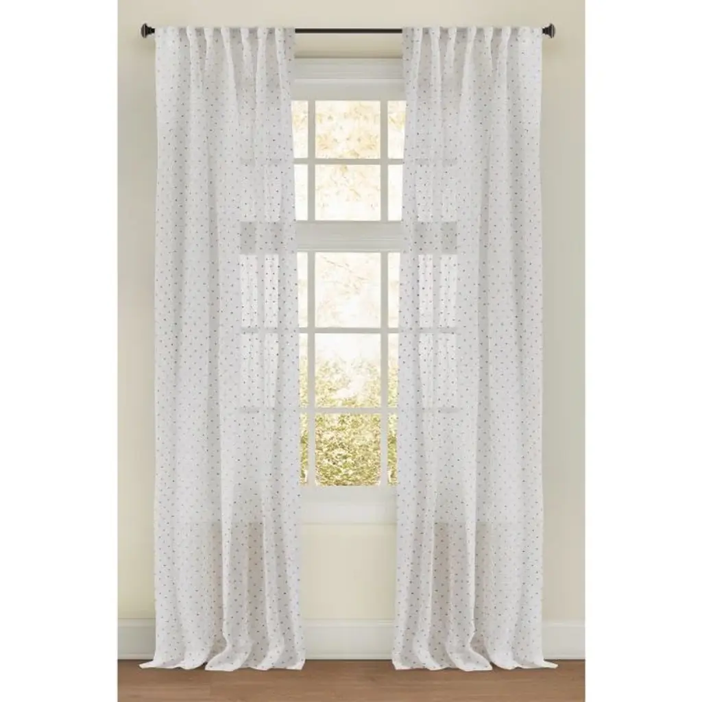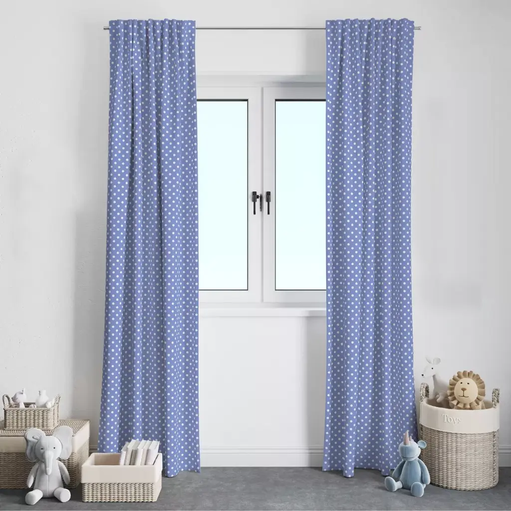 Bacati - Pin Dots Baby Blue Cotton Printed Single Window Curtain Panel