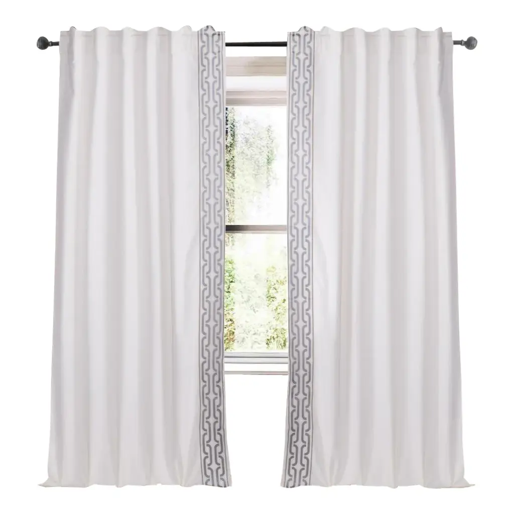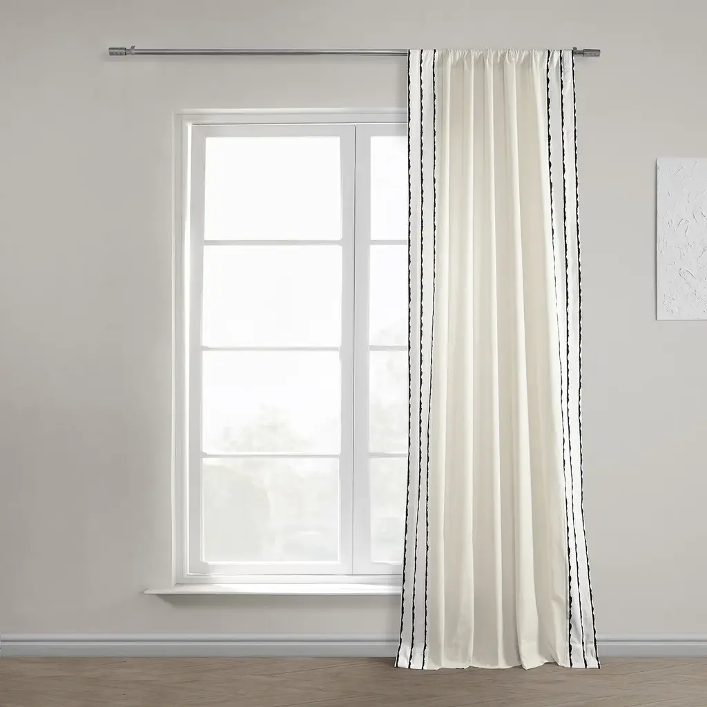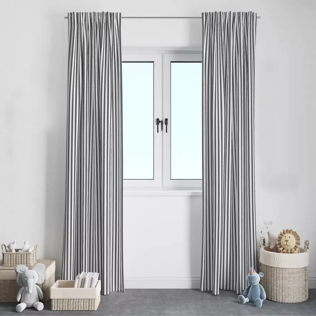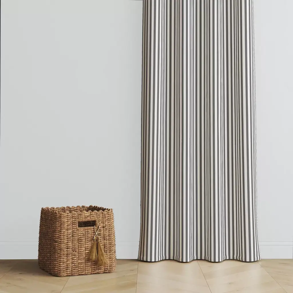 Bacati - Pin Stripes Gray Cotton Printed Single Window Curtain Panel