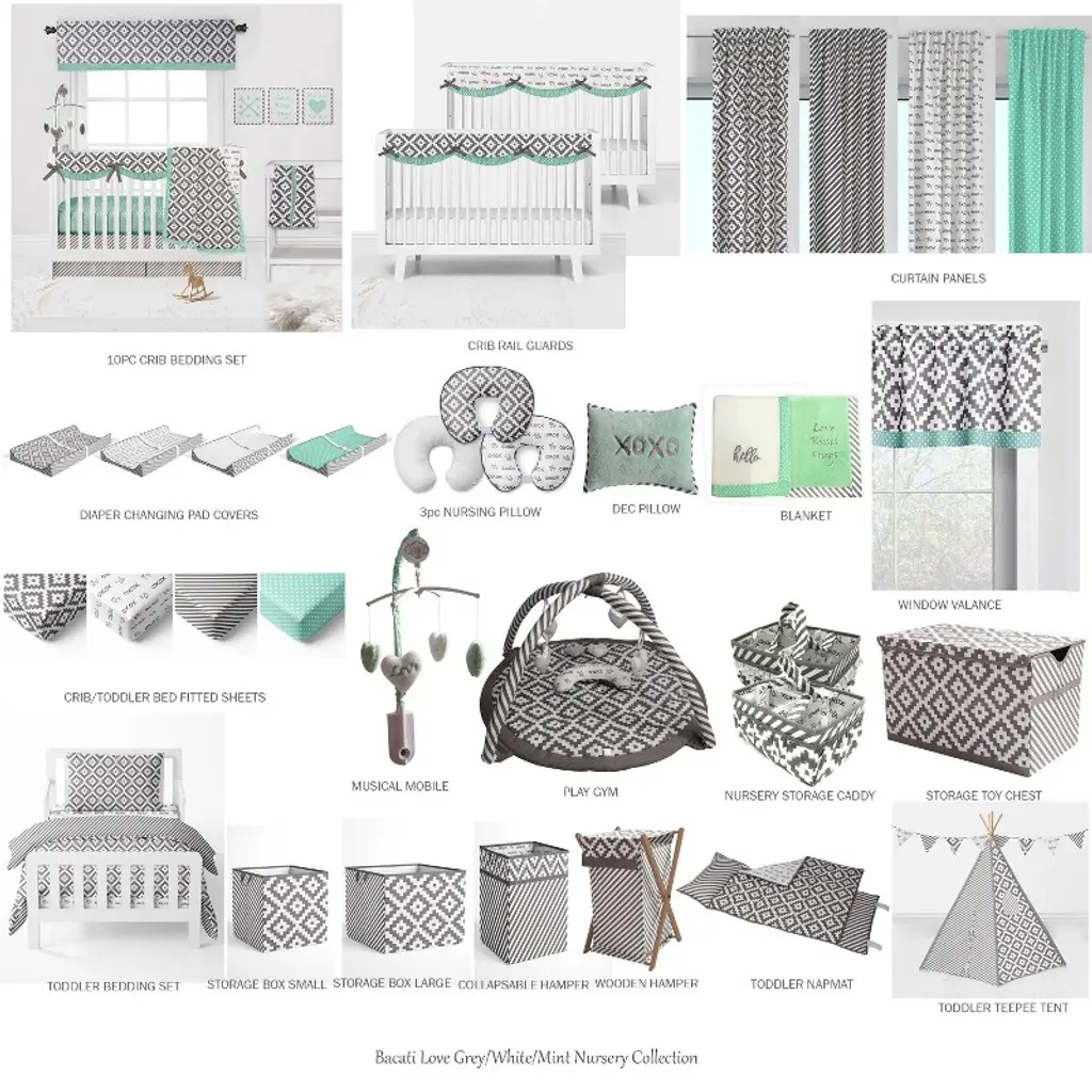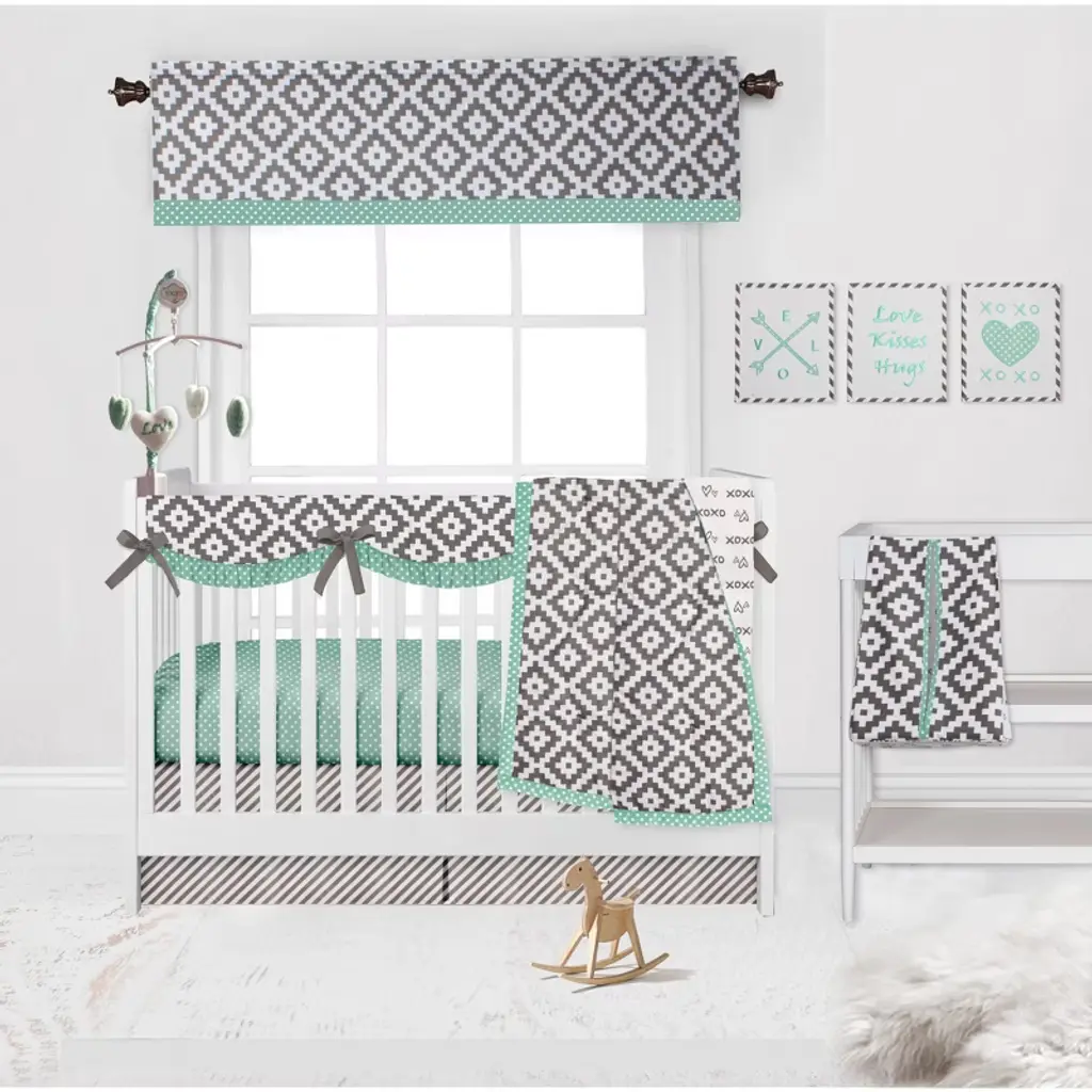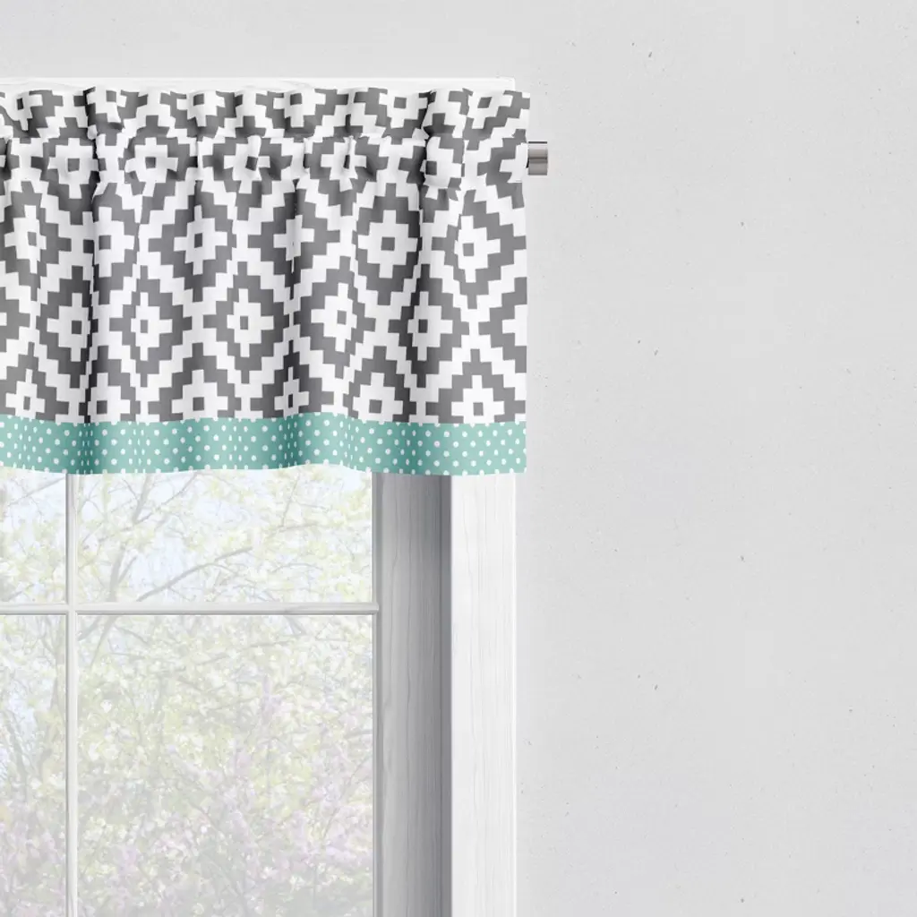 Bacati - Rod Pocket Window Valance Aztec Love Grey Mint