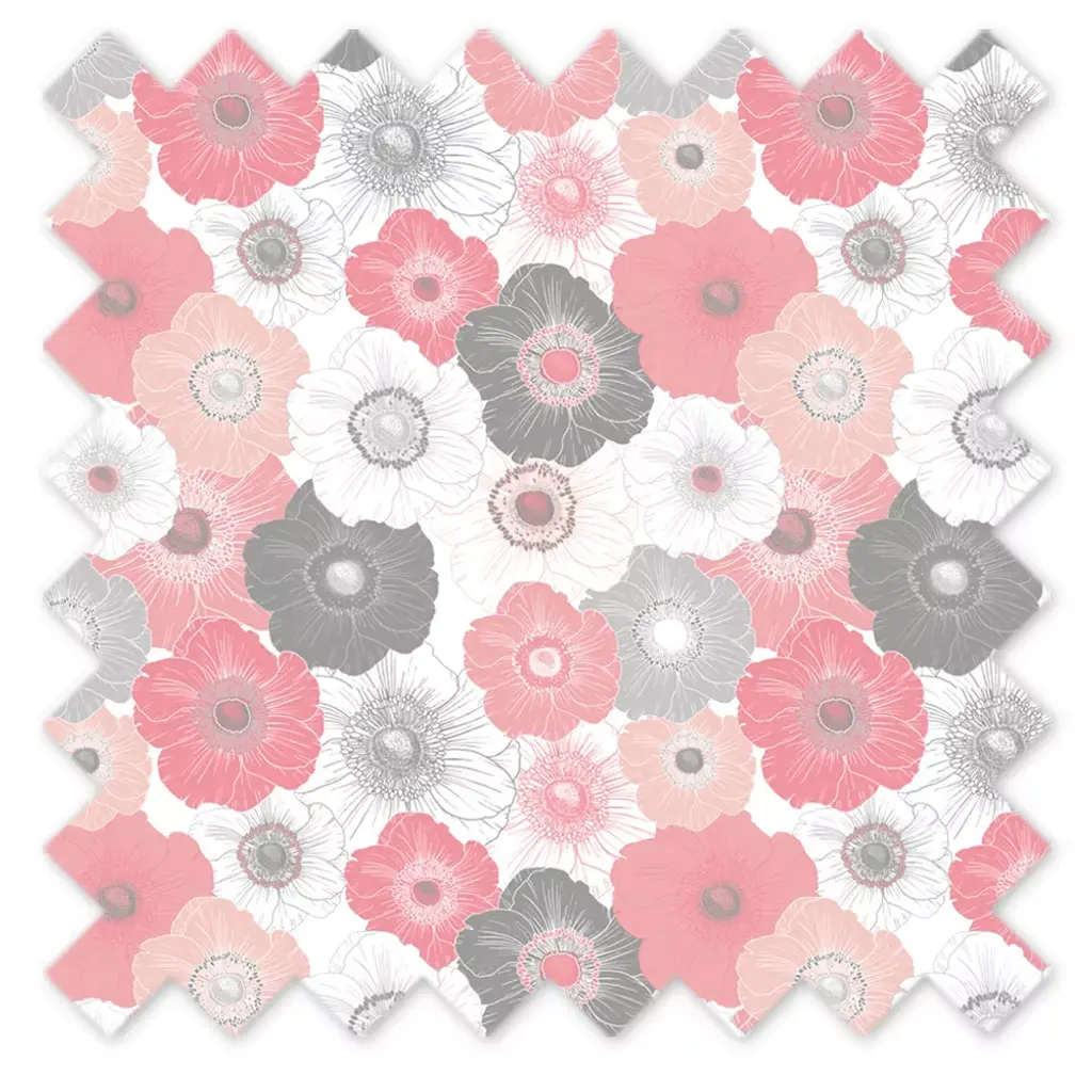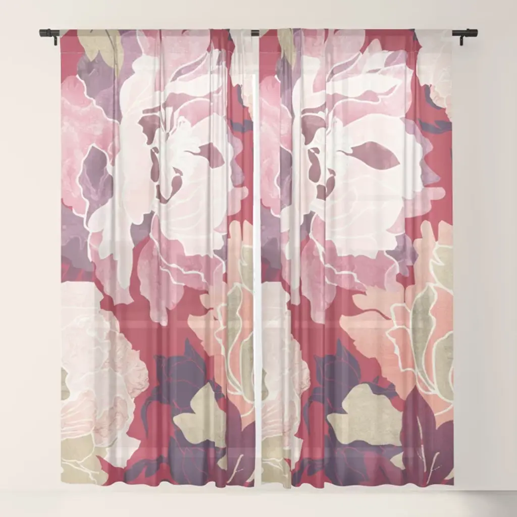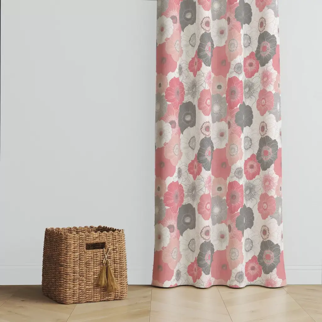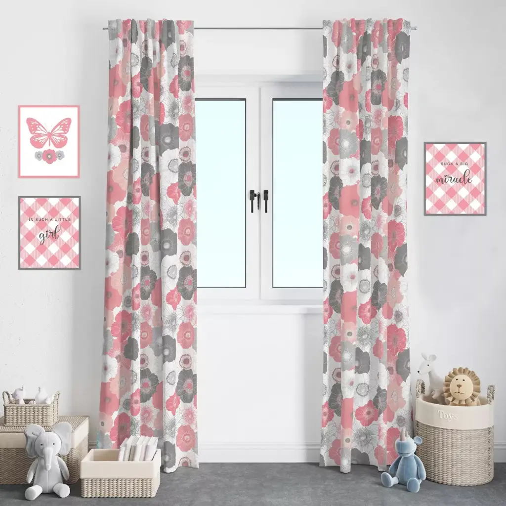 Bacati - Watercolor Floral Coral Gray Cotton Printed Single Window Curtain Panel