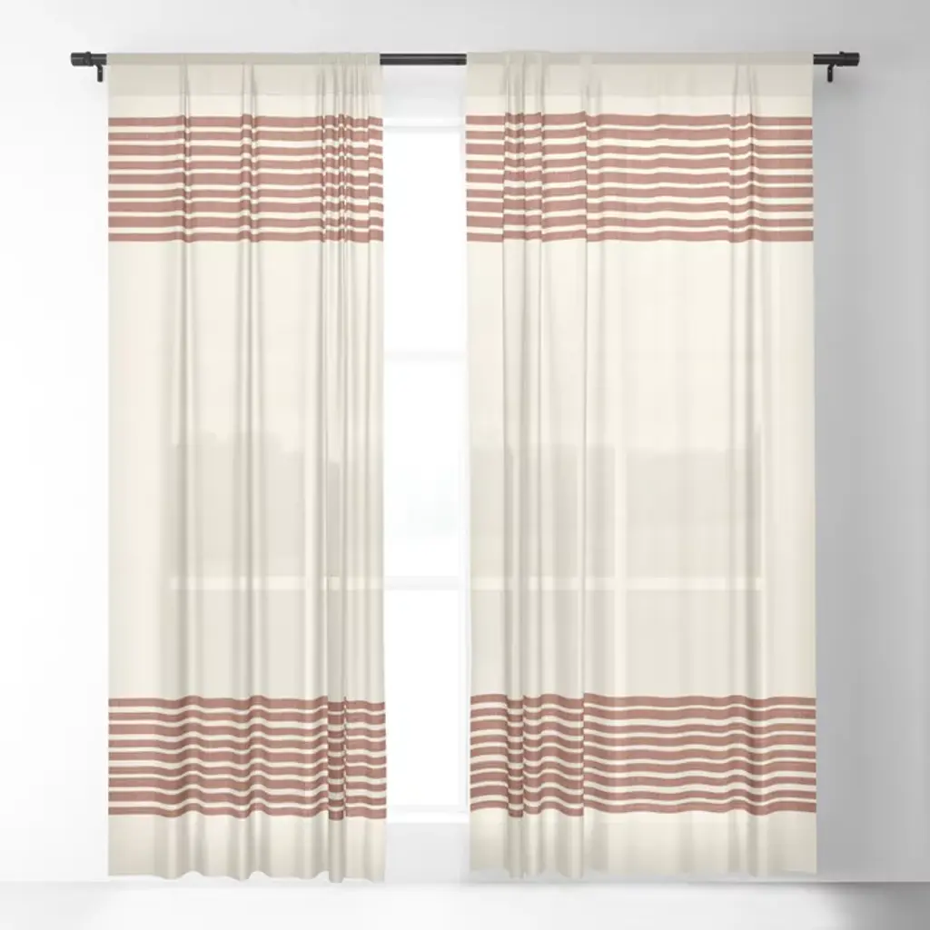 Blackout curtains are crafted with 100% woven polyester with a linen-like texture.Light-Filtering curtains are crafted with 100% mid-weight polyester.Sheer curtains are crafted with 100% lightweight polyester.Single sided print with white on reverse.Available in single or double panel options (double panels feature the same design on both).4" bottom pocket for easy hanging on any curtain rod (please note: artwork will appear upside down on non-patterned designs).Machine washable for easy care.Please note: Color variations may occur between on-site previews, your screen, and the printed fabric.Blackout, Light-Filtering, and Sheer Curtains are easy to care for:Machine wash cold.Use gentle cycle.Tumble dry low.SHIPPING: Items are made to order and typically ship within 3-4 business days. Click here for more information about delivery options.RETURNS: Return requests can be made within 30 days of your item(s) delivery. Click here for more information on returns.