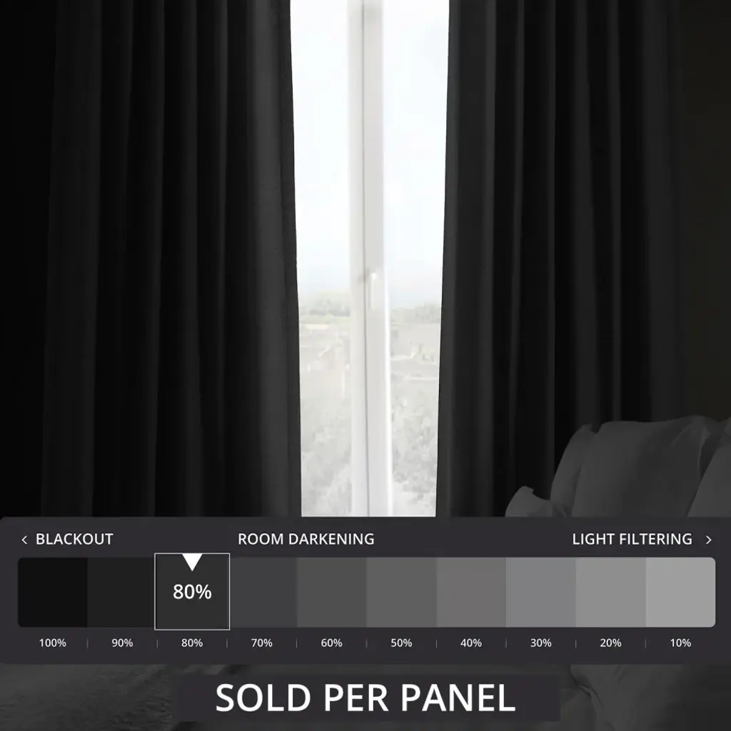 The Bellino Fabric is unique and beautiful due to its richness of color and added dimension through woven techniques and texture. Smoked Truffle is a deep charcoal color that is the essence of modern luxurySOLD PER PANELPole Pocket with Hook Belt & Back Tabs100% PolyesterUnlinedWeighted HemDry Clean Only