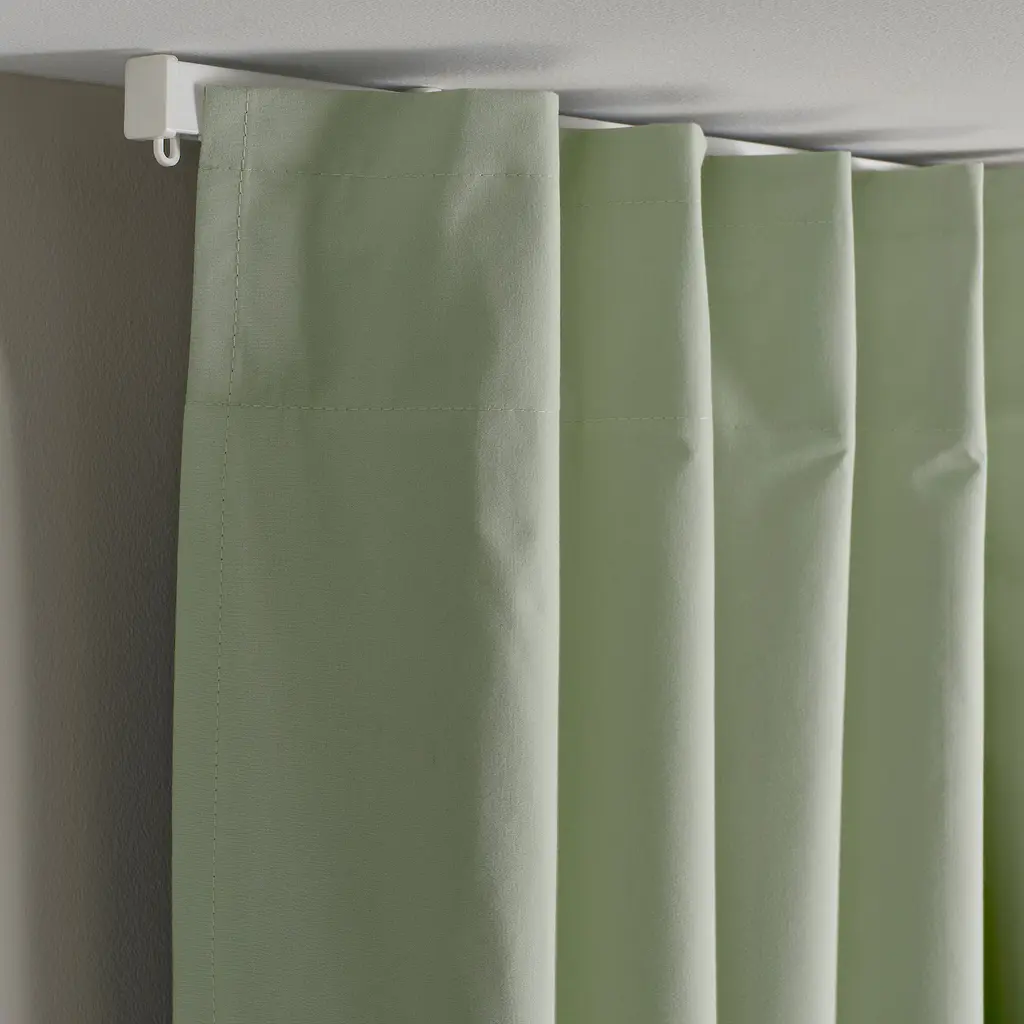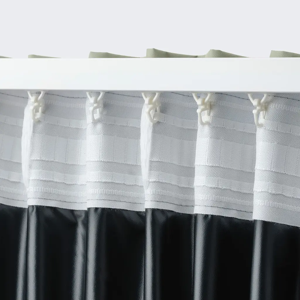 BENGTA Block-out curtain, 1 piece - green/with heading tape 83x98 ". The fabric blocks out all light and glare on TV/screens. It gives complete privacy as shapes or light cannot be perceived from outside and the transition between day/night cannot be distinguished Curtain, 1 piece included
