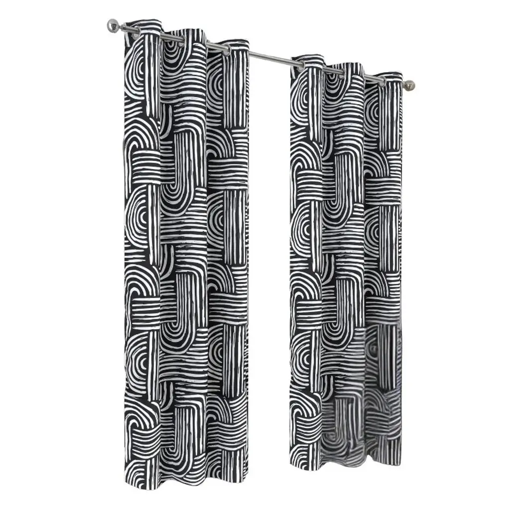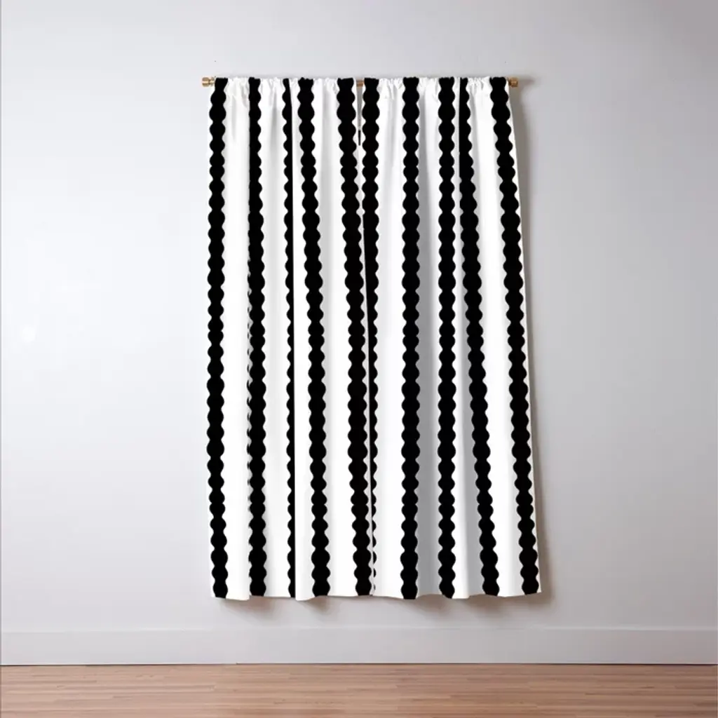 Black And White, Wavy, Squiggle, Stripes Curtain