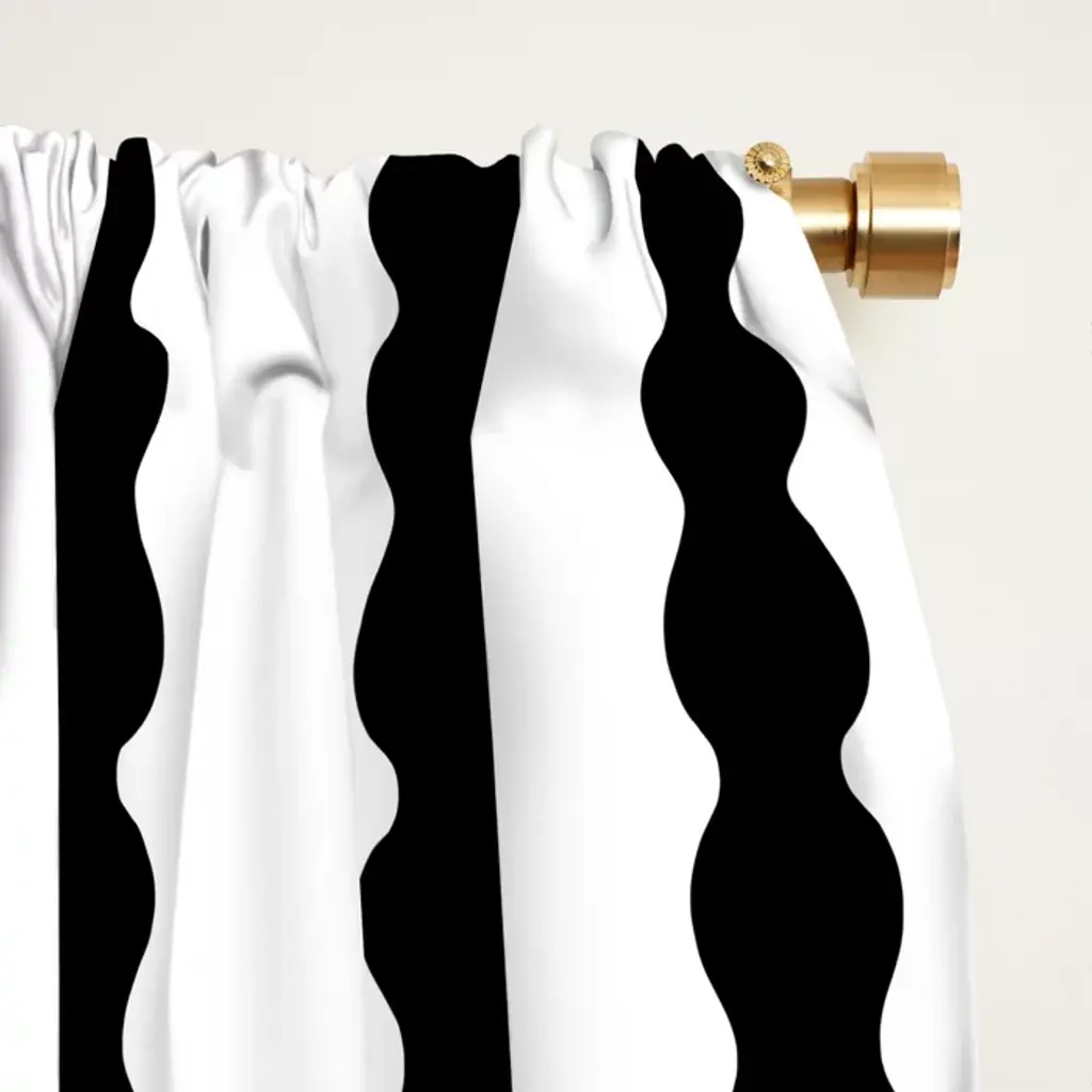 Black And White, Wavy, Squiggle, Stripes Curtain