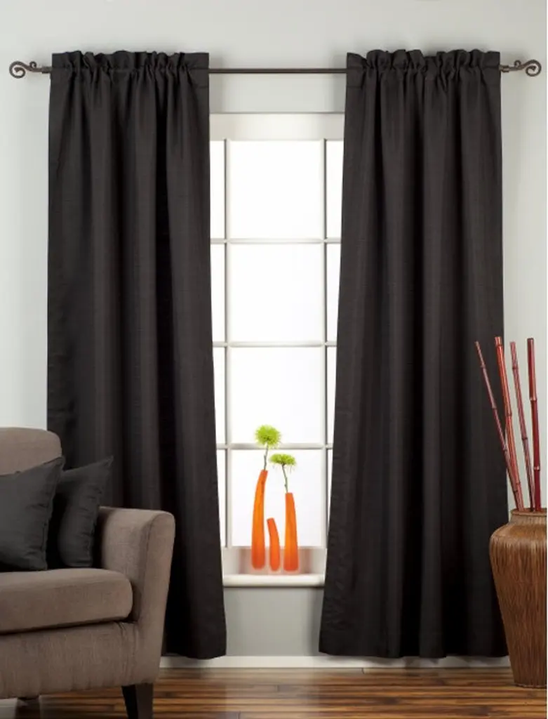 Black Tab Top Textured Curtain / Drape / Panel - 84" - Piece