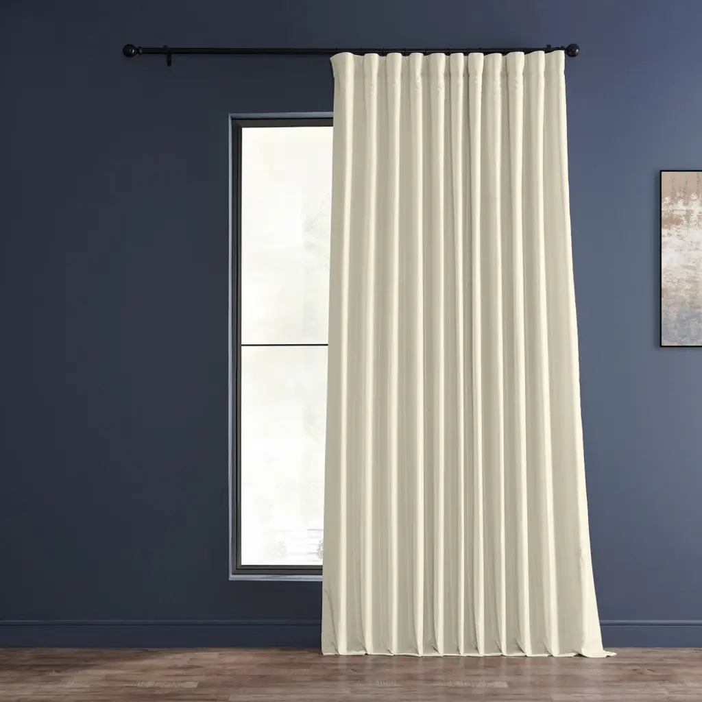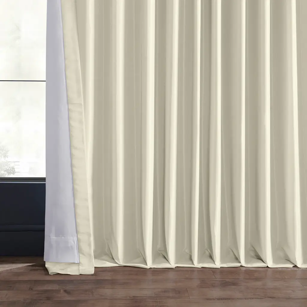 Blackout Extra Wide Vintage Textured Faux Dupioni Curtain, Off White, 100"x96"