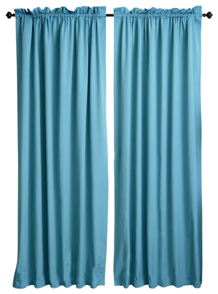 Blazing Needles 108"x52" Twill Curtain Panels, Set Of 2, Aqua Blue
