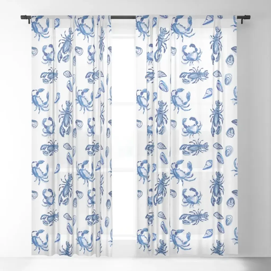 Blue And White Sea Life Ii Curtain