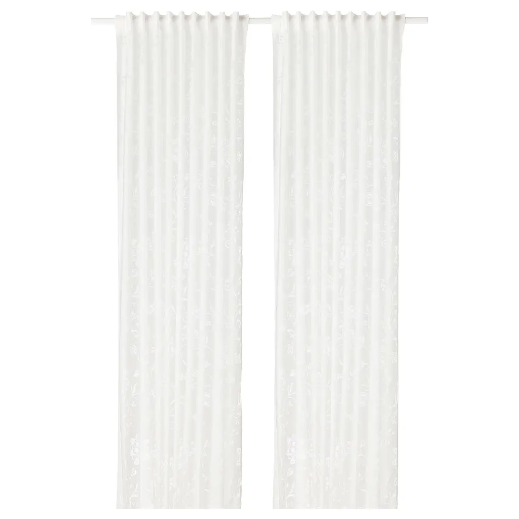 BORGHILD Sheer curtains, 1 pair - with heading tape/white 57x98 ". The sheer curtains let the daylight through but provide privacy so they are perfect to use in a layered window solution. The curtains can be used on a curtain rod or a curtain track. Curtains, 1 pair included