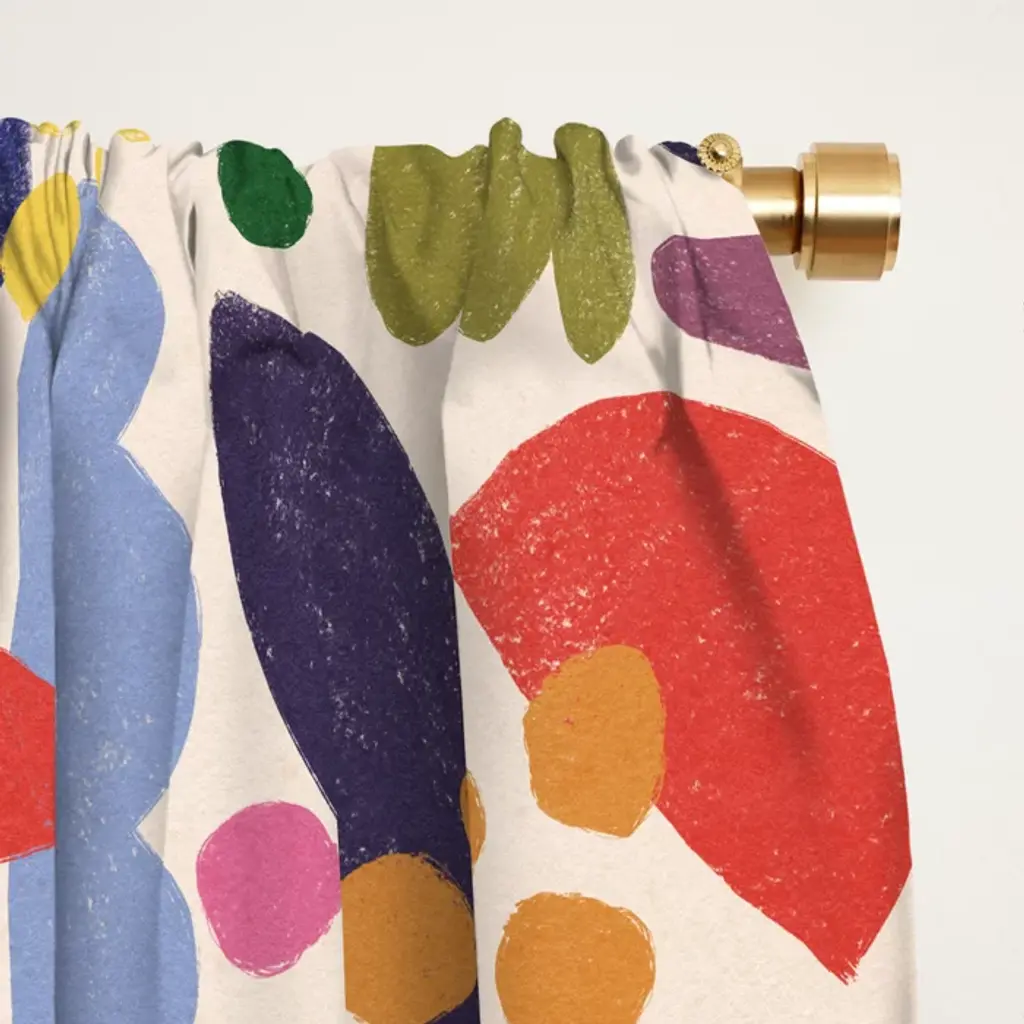 Blackout curtains are crafted with 100% woven polyester with a linen-like texture.Light-Filtering curtains are crafted with 100% mid-weight polyester.Sheer curtains are crafted with 100% lightweight polyester.Single sided print with white on reverse.Available in single or double panel options (double panels feature the same design on both).4" bottom pocket for easy hanging on any curtain rod (please note: artwork will appear upside down on non-patterned designs).Machine washable for easy care.Please note: Color variations may occur between on-site previews, your screen, and the printed fabric.Blackout, Light-Filtering, and Sheer Curtains are easy to care for:Machine wash cold.Use gentle cycle.Tumble dry low.SHIPPING: Items are made to order and typically ship within 3-4 business days. Click here for more information about delivery options.RETURNS: Return requests can be made within 30 days of your item(s) delivery. Click here for more information on returns.