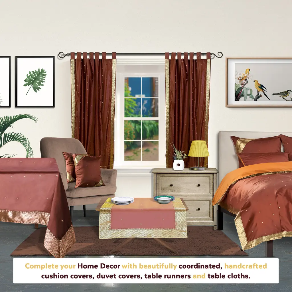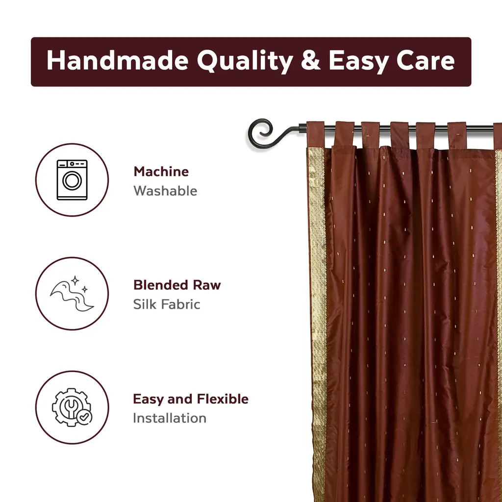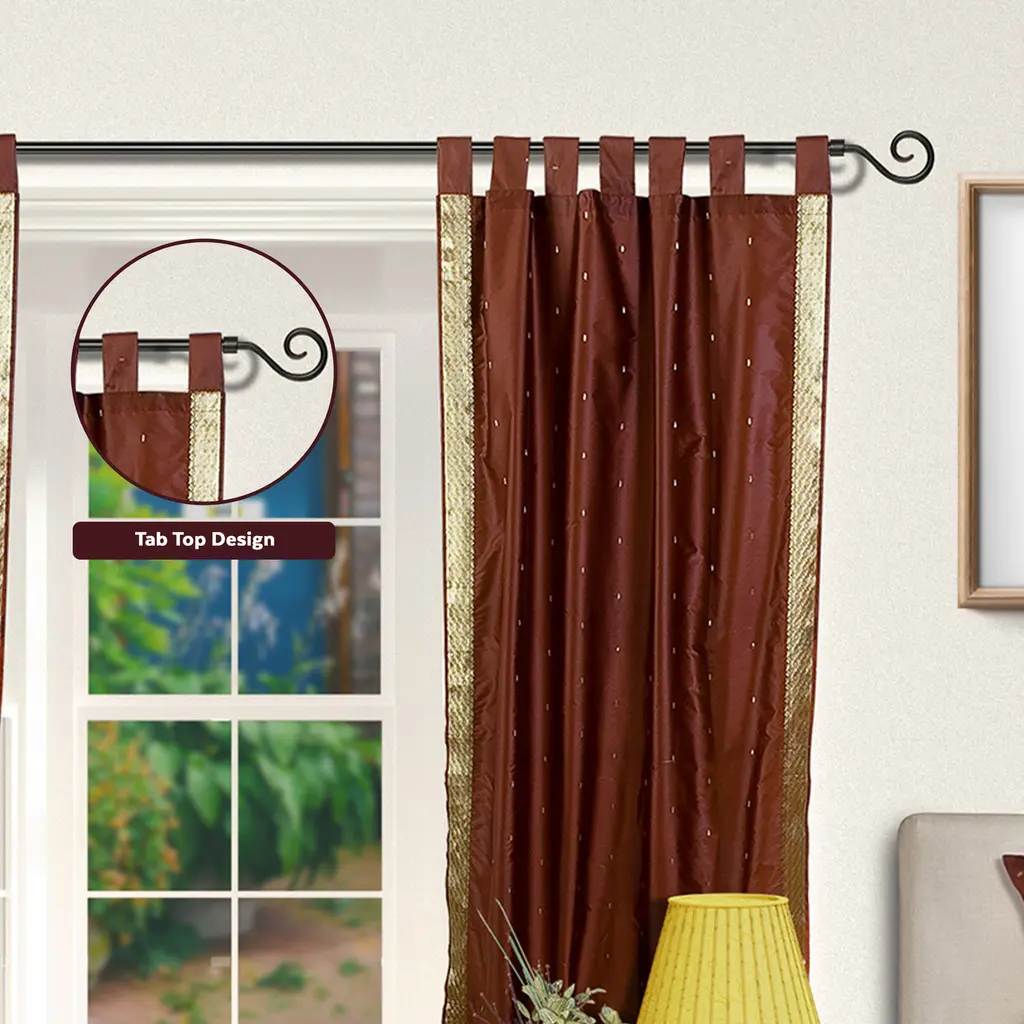 Brown Tab Top Sheer Sari Curtain / Drape / Panel - Pair