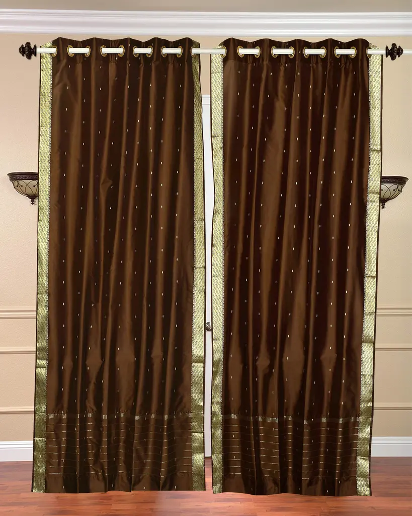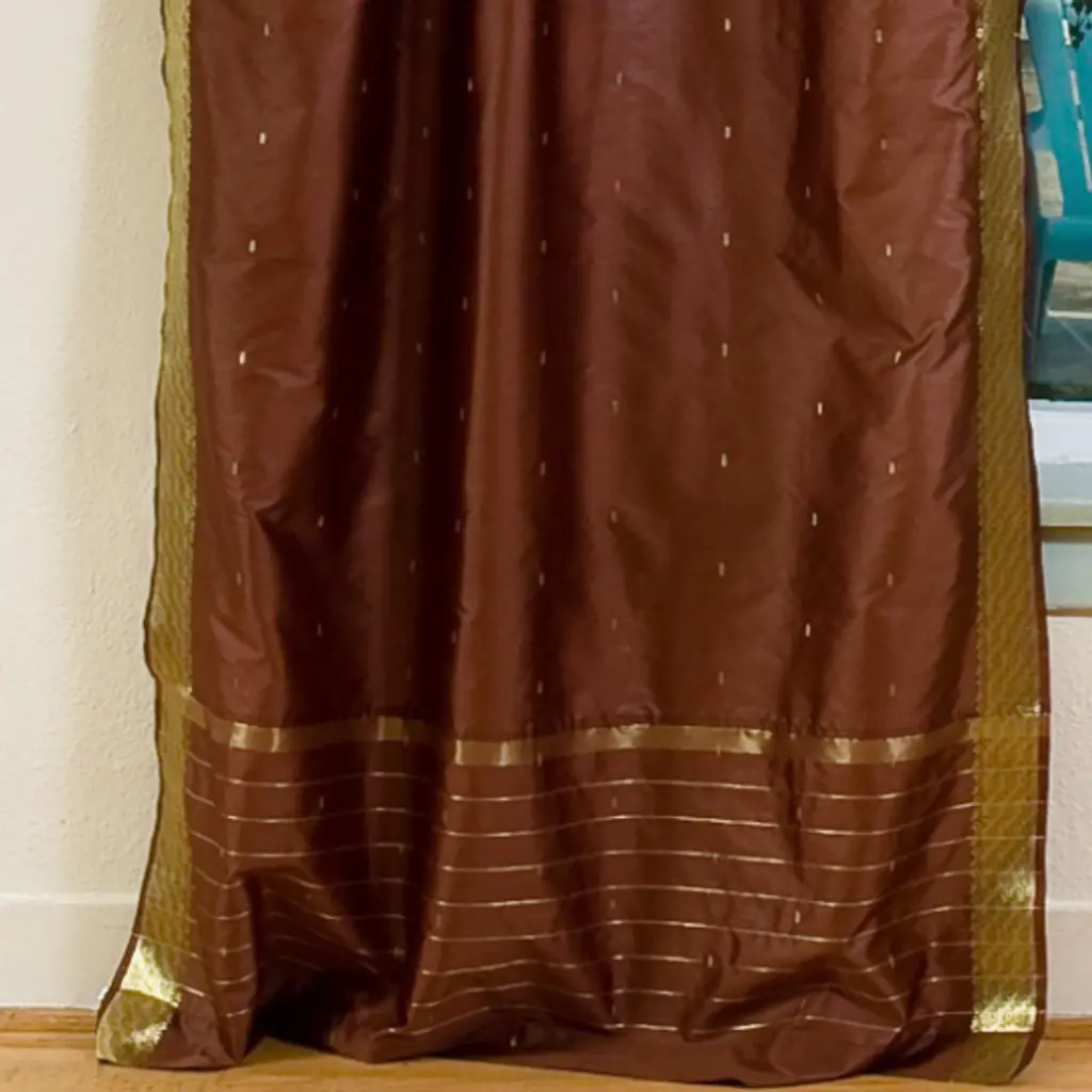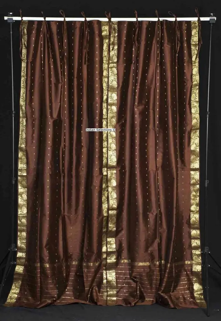 Brown Tie Top Sheer Sari Curtain / Drape / Panel - Pair
