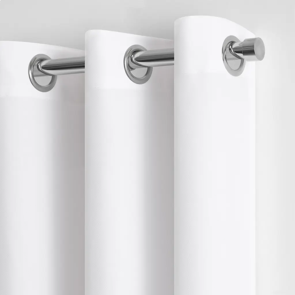 Bring a contemporary touch to any space in your home with the Cairo Solid Grommet Window Curtain Set. These room darkening curtains are offered in a wide variety of neutral colors to suit every decorating style from modern eclectic to traditional. The 1.65" stainless steel grommet top header offers easy hanging with an added accent of metallic flair. Use them indoors or outside, these versatile curtains are UPF 50+ sun and UV protection making them perfect for use in your bedroom, living room or out on your porch, deck, patio, or sunroom. Crafted from 100% polyester, this set of two curtain panels is machine washable for easy care.