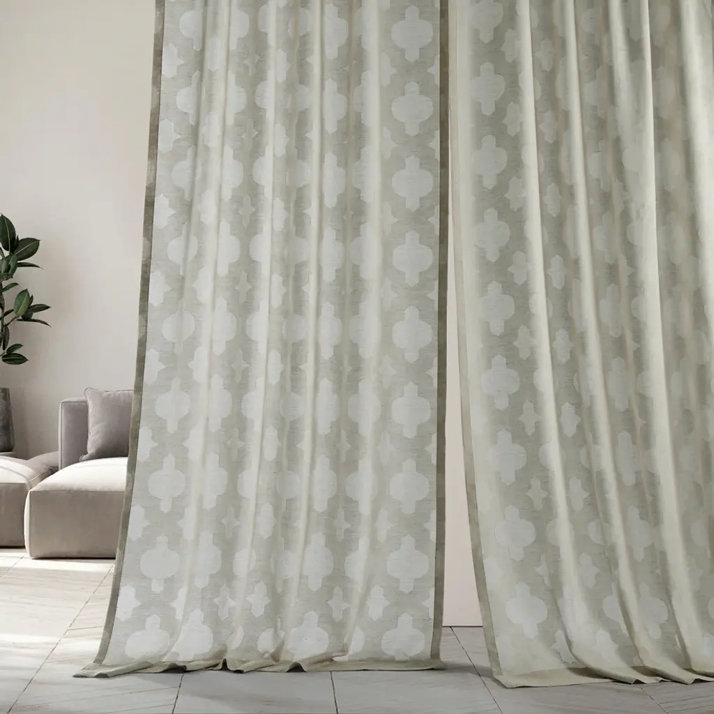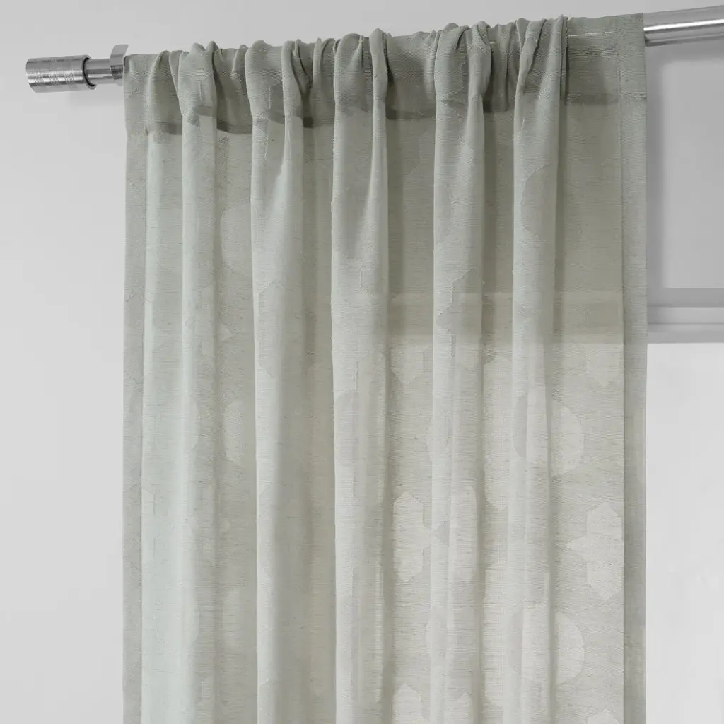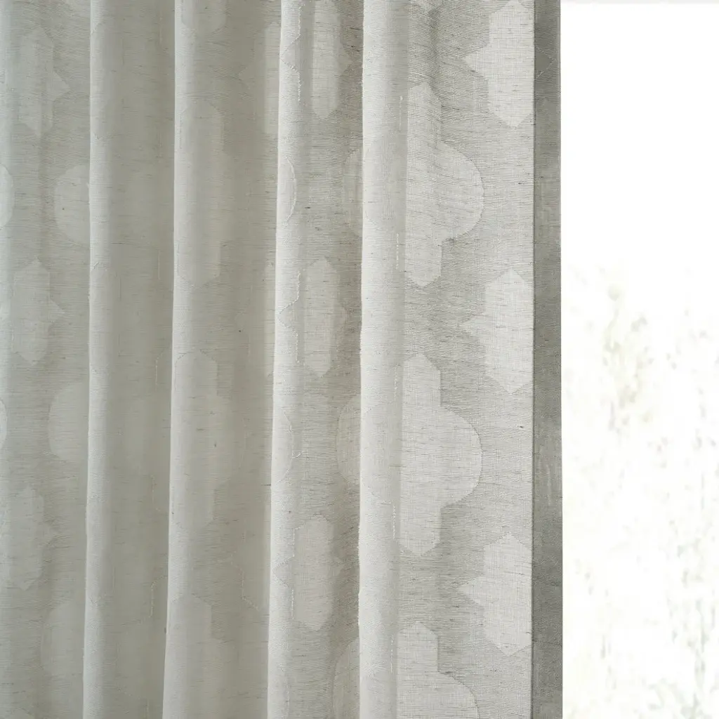 Calais Tile Patterned Linen Sheer Curtain Single Panel, Gray, 50"x96"