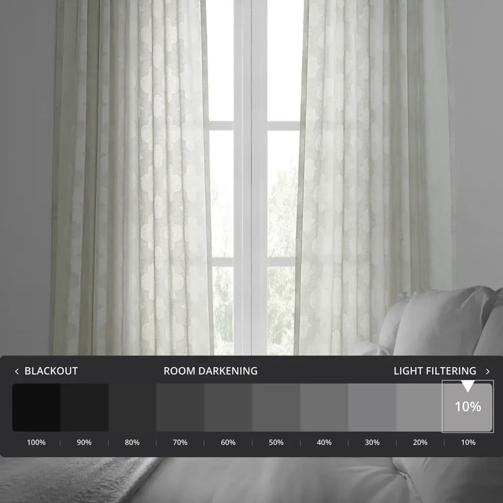 Soft, supple and translucent, these beautiful Patterned Linen Sheers will add interest and elegance to any window. Offered in medley of designs from modern geometrics to romantic florals, these sheer curtains can be an added decorative touch when paired with solid curtains, or can be a charming, elegant design element when hung all on their own.