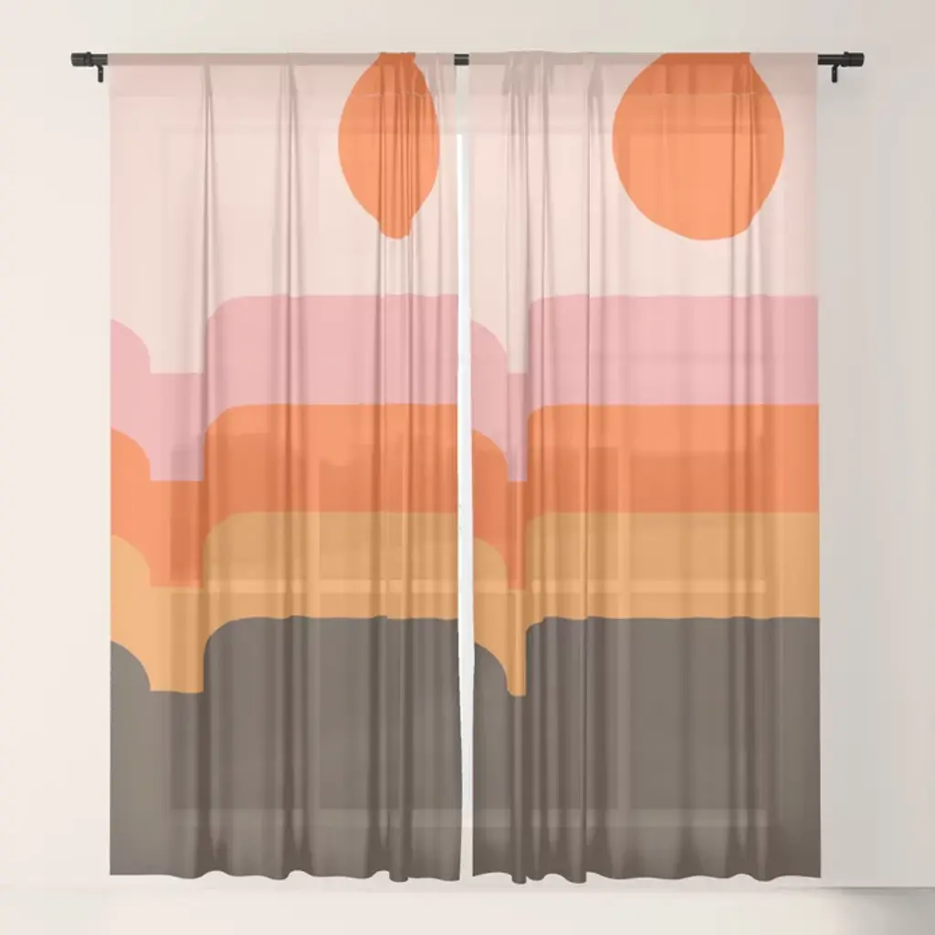 Blackout curtains are crafted with 100% woven polyester with a linen-like texture.Light-Filtering curtains are crafted with 100% mid-weight polyester.Sheer curtains are crafted with 100% lightweight polyester.Single sided print with white on reverse.Available in single or double panel options (double panels feature the same design on both).4" bottom pocket for easy hanging on any curtain rod (please note: artwork will appear upside down on non-patterned designs).Machine washable for easy care.Please note: Color variations may occur between on-site previews, your screen, and the printed fabric.Blackout, Light-Filtering, and Sheer Curtains are easy to care for:Machine wash cold.Use gentle cycle.Tumble dry low.SHIPPING: Items are made to order and typically ship within 3-4 business days. Click here for more information about delivery options.RETURNS: Return requests can be made within 30 days of your item(s) delivery. Click here for more information on returns.