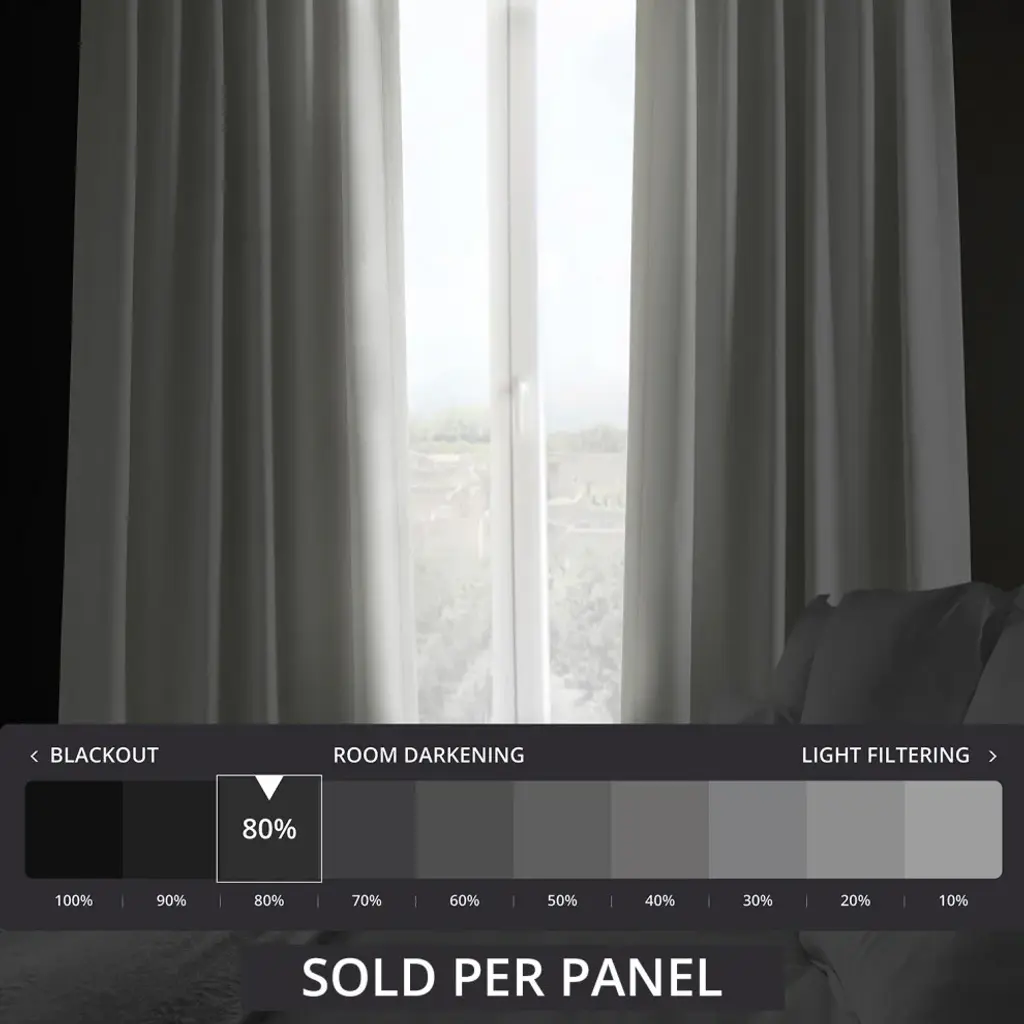 We''ve improved upon our already popular Blackout Curtain Collection by introducing an Exclusive Bellino Blackout Curtain Collection. The fabric has a soft, yard dyed texture and comes as Pole Pocket with Back Tabs and Hookbelt. These curtains keep the light out and provides optimal thermal insulation. As a general rule, for proper fullness panels should measure 2-3 times the width of your window/opening.