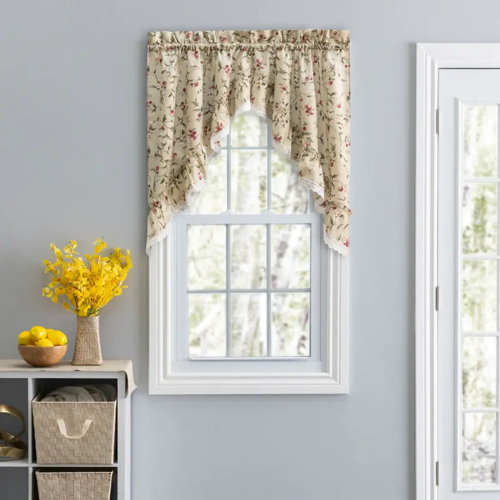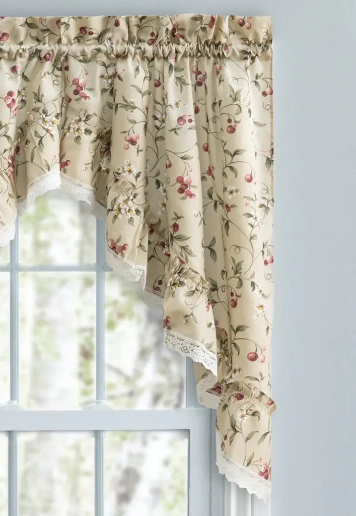 Cherries 58" X 36" Ruffled Swag Valance, Natural