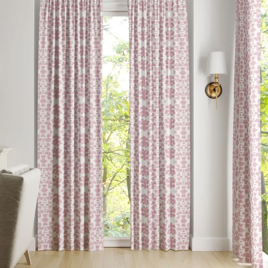 Brighten and elevate your space with a splash of joyful color with these beautiful curtain panels. Blending shades of pink, blue, and white with pops of yellow and green all coming together in this chic design.