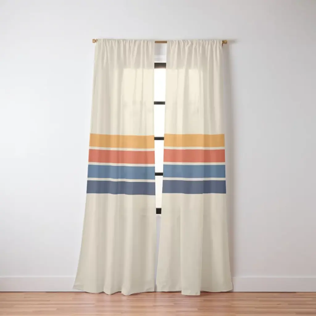 Blackout curtains are crafted with 100% woven polyester with a linen-like texture.Light-Filtering curtains are crafted with 100% mid-weight polyester.Sheer curtains are crafted with 100% lightweight polyester.Single sided print with white on reverse.Available in single or double panel options (double panels feature the same design on both).4" bottom pocket for easy hanging on any curtain rod (please note: artwork will appear upside down on non-patterned designs).Machine washable for easy care.Please note: Color variations may occur between on-site previews, your screen, and the printed fabric.Blackout, Light-Filtering, and Sheer Curtains are easy to care for:Machine wash cold.Use gentle cycle.Tumble dry low.SHIPPING: Items are made to order and typically ship within 3-4 business days. Click here for more information about delivery options.RETURNS: Return requests can be made within 30 days of your item(s) delivery. Click here for more information on returns.